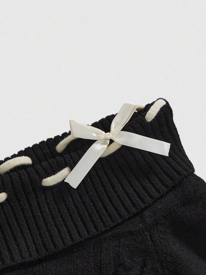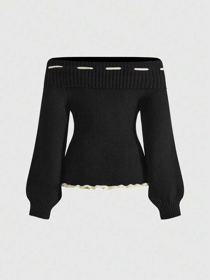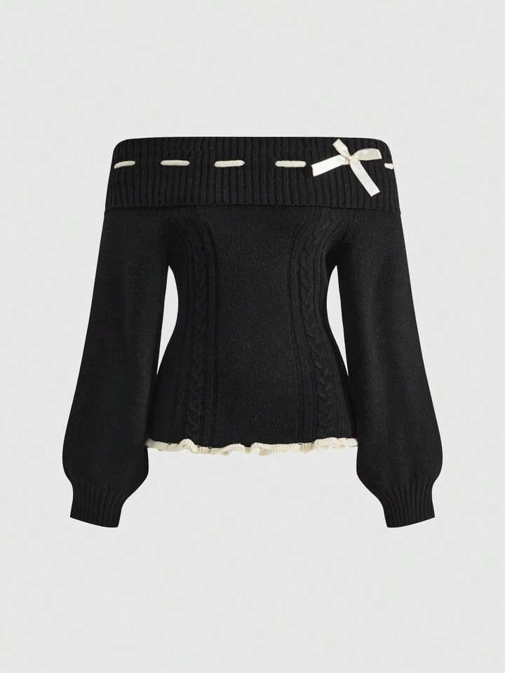 Kawaii Süßer & sanfter Damen Pullover, Off-Shoulder, Schleife und Passform