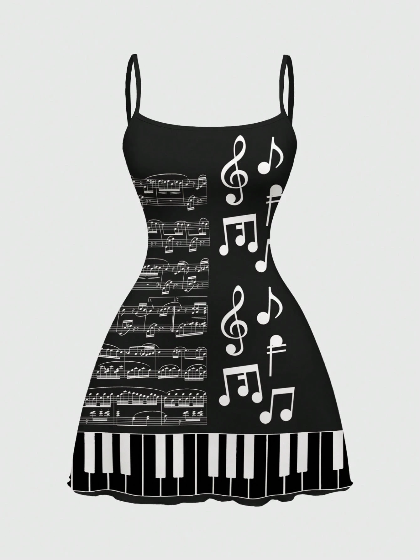 Kawaii Süßes Kleid mit Klaviernoten- und Notenblatt-Muster, Collegestil für Frühling/Sommer