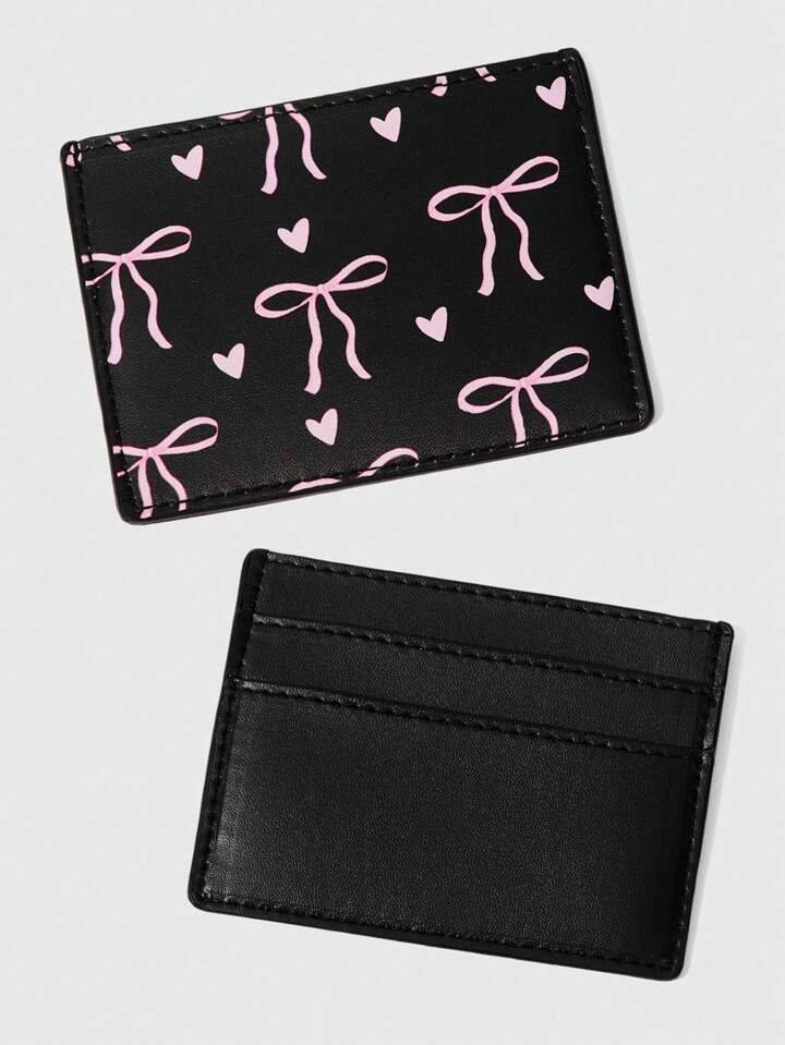 Kawaii Süßes rosafarbenes Schleifen-Design Compact Kartenetui, niedliches Kreditkarten Portemonnaie