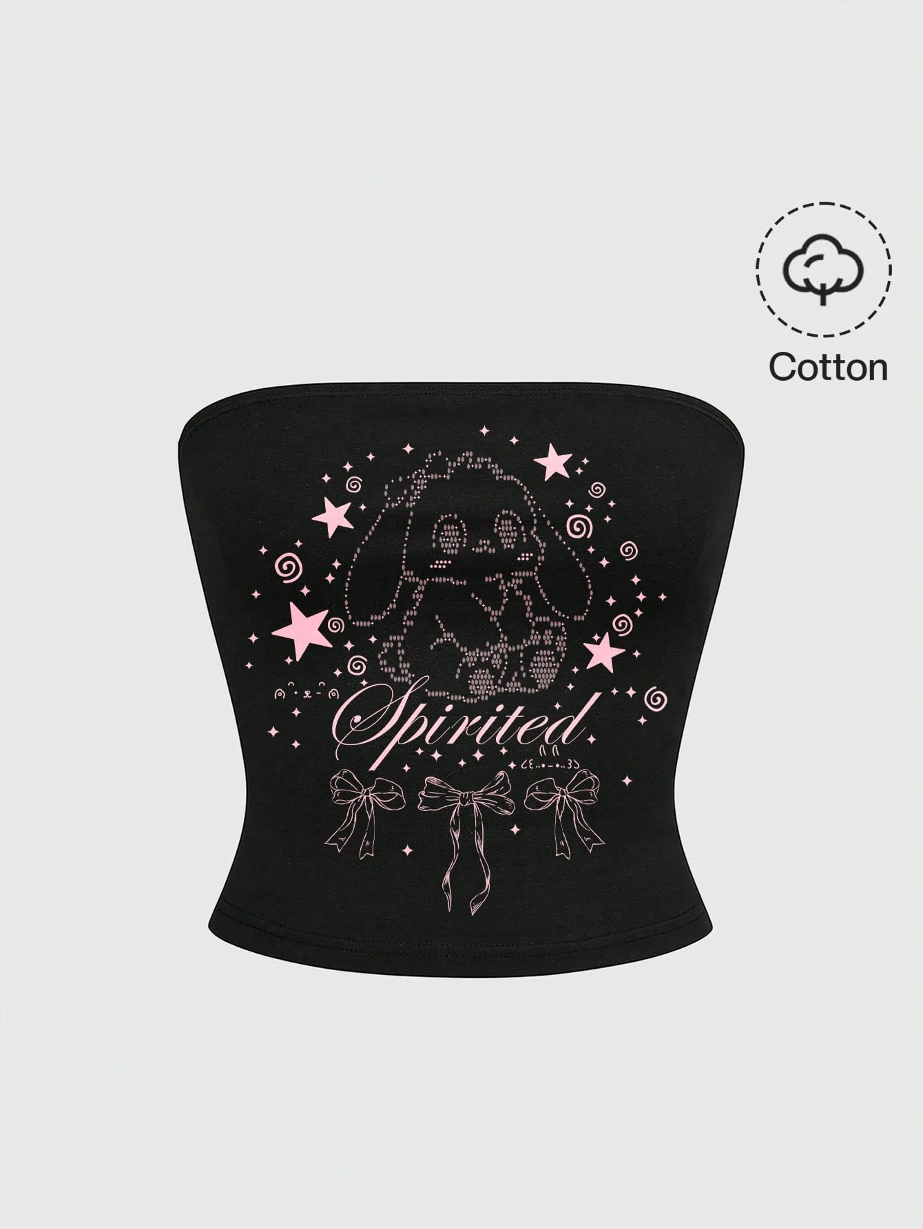 Kawaii Süßer Kaninchen-Emoticon Fliege schwarzes ärmelloses Baumwoll-Crop-Top für Frauen