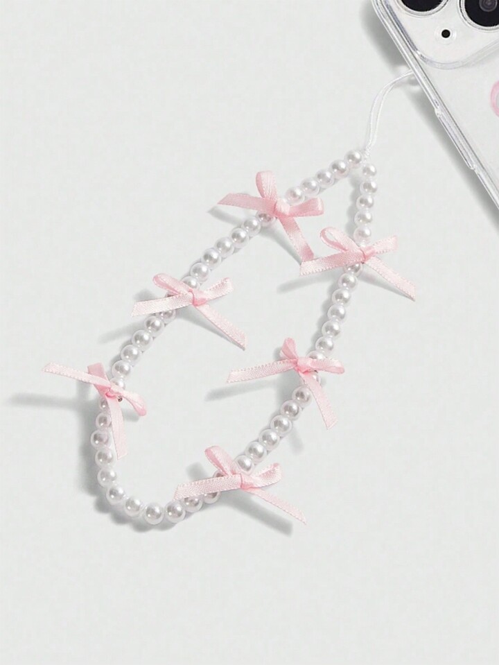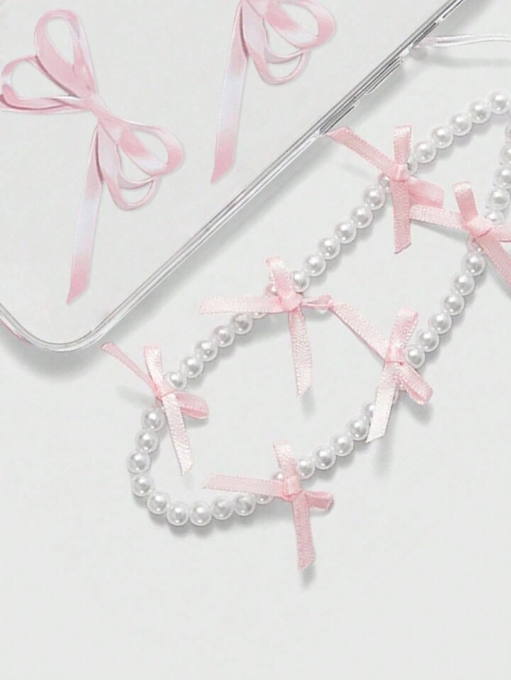 Kawaii Niedliches handgefertigtes Schleifenband und Perlen dekoriertes Halsketten-Set Handyhülle, kompatibel mit iPhone 12/13/14 Serie und anderen Handy-Modellen