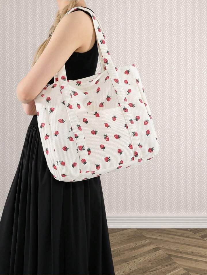 Kawaii Süße Erdbeere Muster Schultertasche, lässige Outdoor Mode Shopper Handtasche mit großer Kapazität, Valentinstag