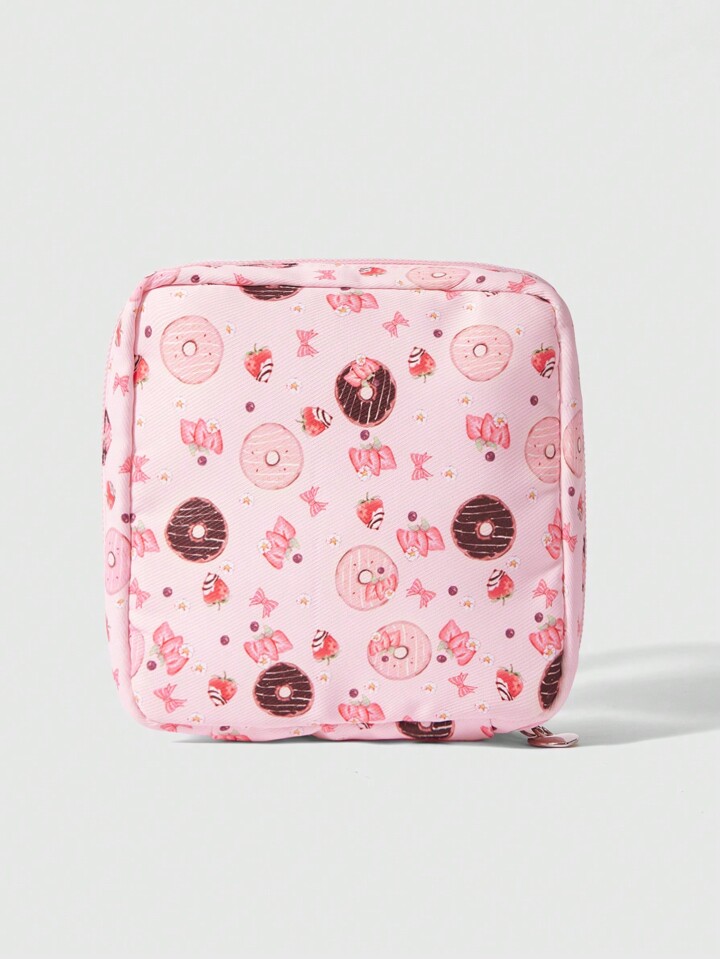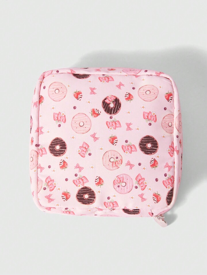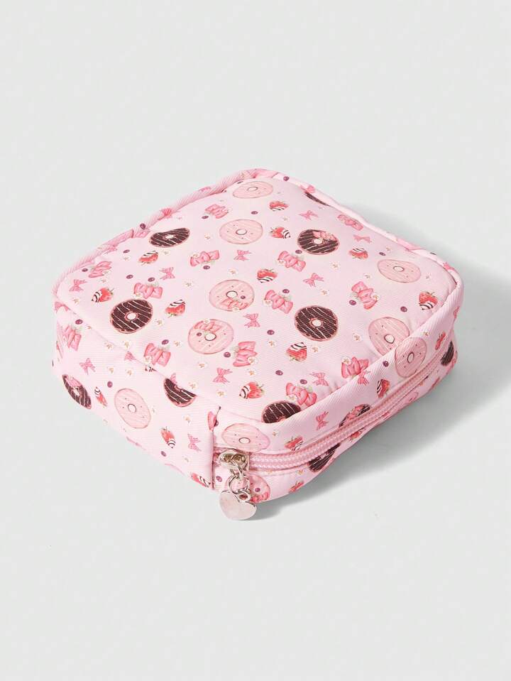 Kawaii Modische dick gepolsterte Kosmetiktasche mit Donut Muster, großes Fassungsvermögen, tragbare Kulturtasche 425973