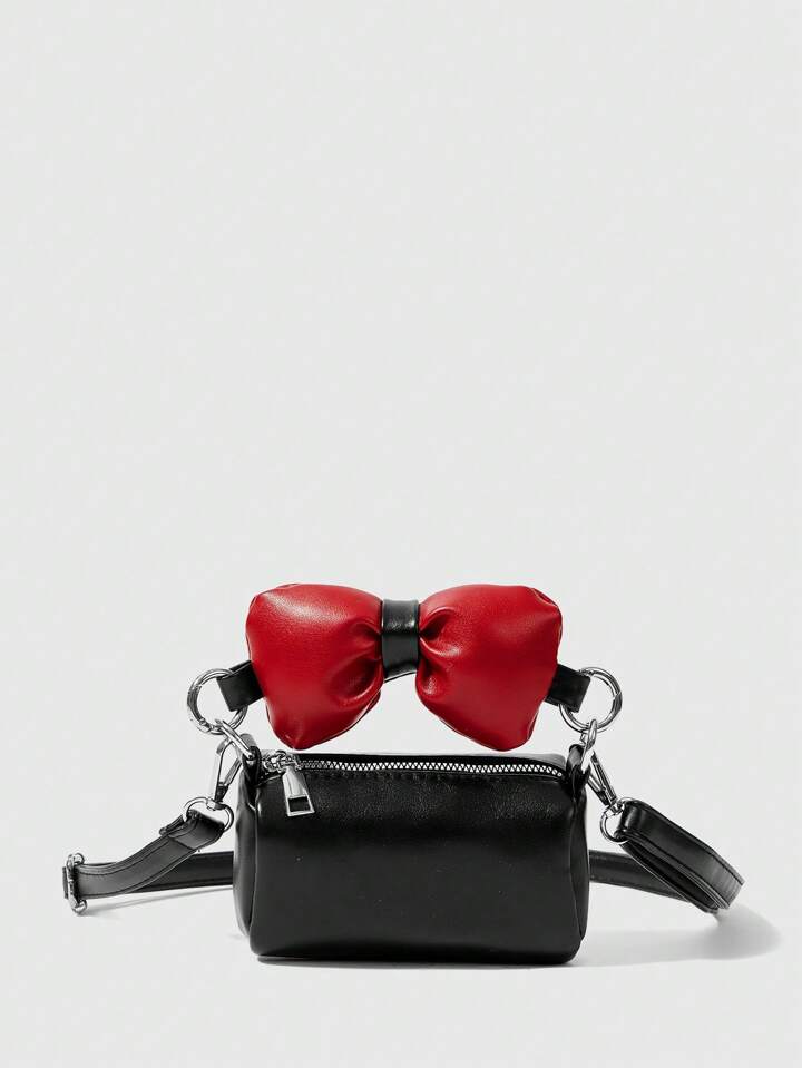 Kawaii Modische Mini-Beuteltasche im Farbblock Design mit Schleife