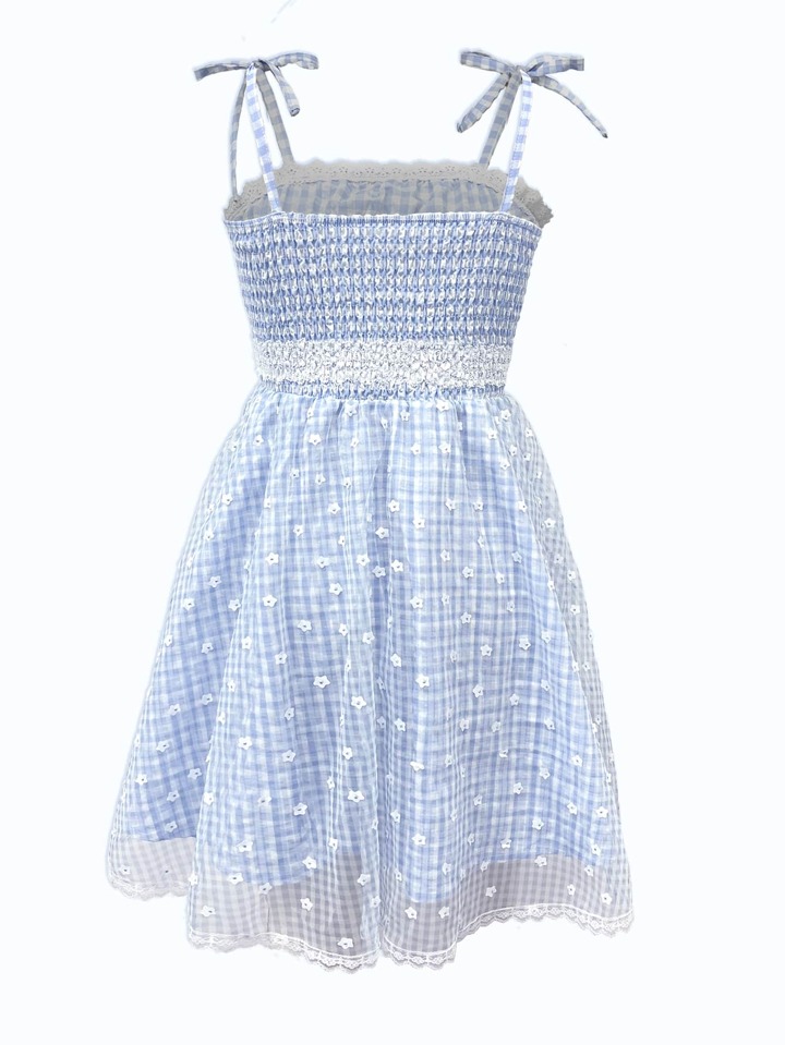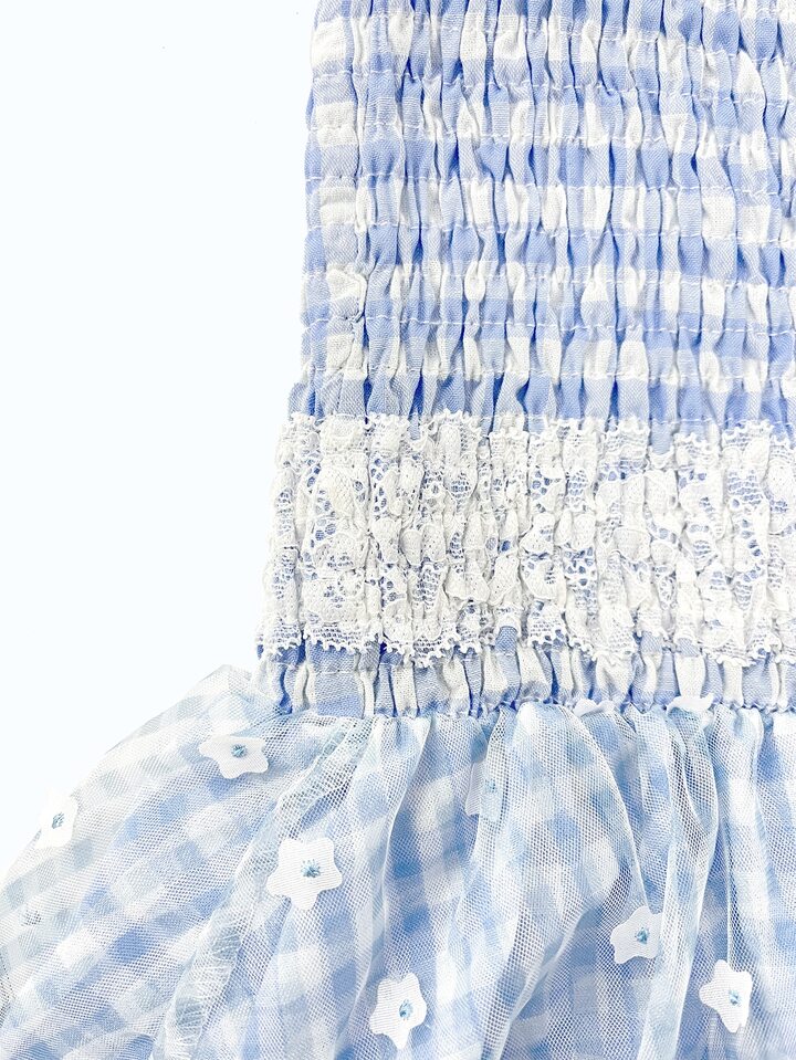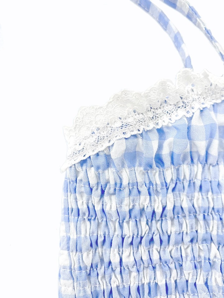Kawaii Cami Kleid mit Blume & Gingham Muster Band auf Schulter
