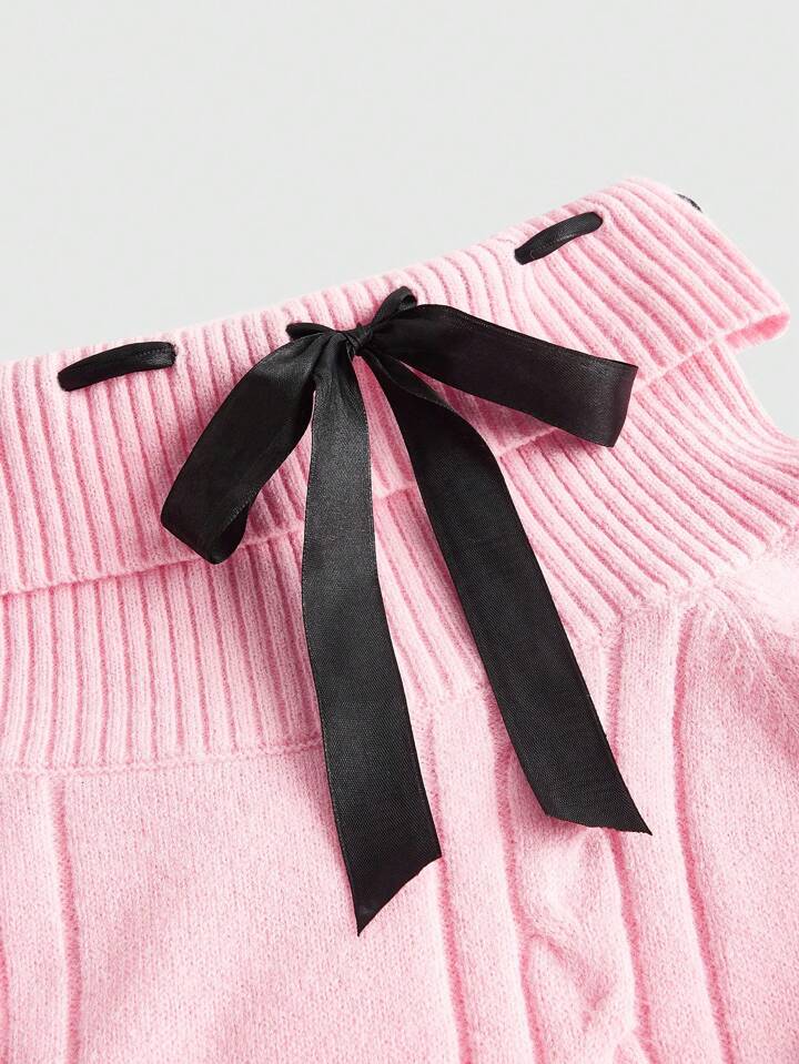 Kawaii Pulloverkleid mit Falten, schulterfrei Band vorne, Kontrast Saum,