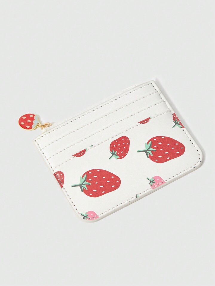 Kawaii Vollflächig bedrucktes Kartenetui/Geldbörse mit Erdbeermuster