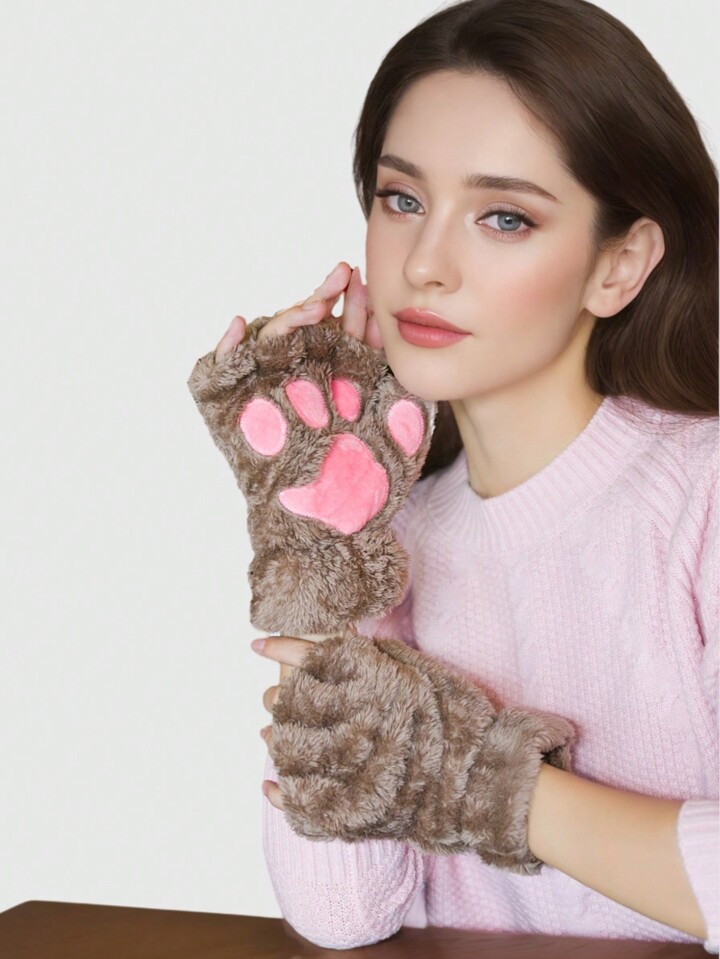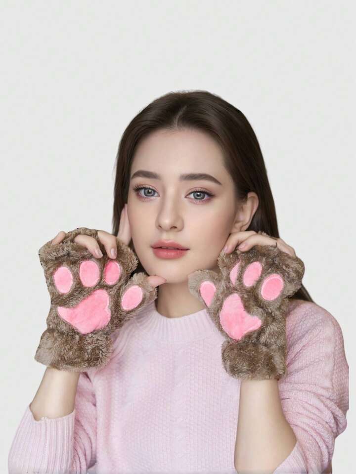 Kawaii Halloween süße Plüsch Stickerei Katze Krallen Fingerlose Handschuhe, lässige Outdoor-Radfahren warme Halbfingerhandschuhe für Herbst & Winter