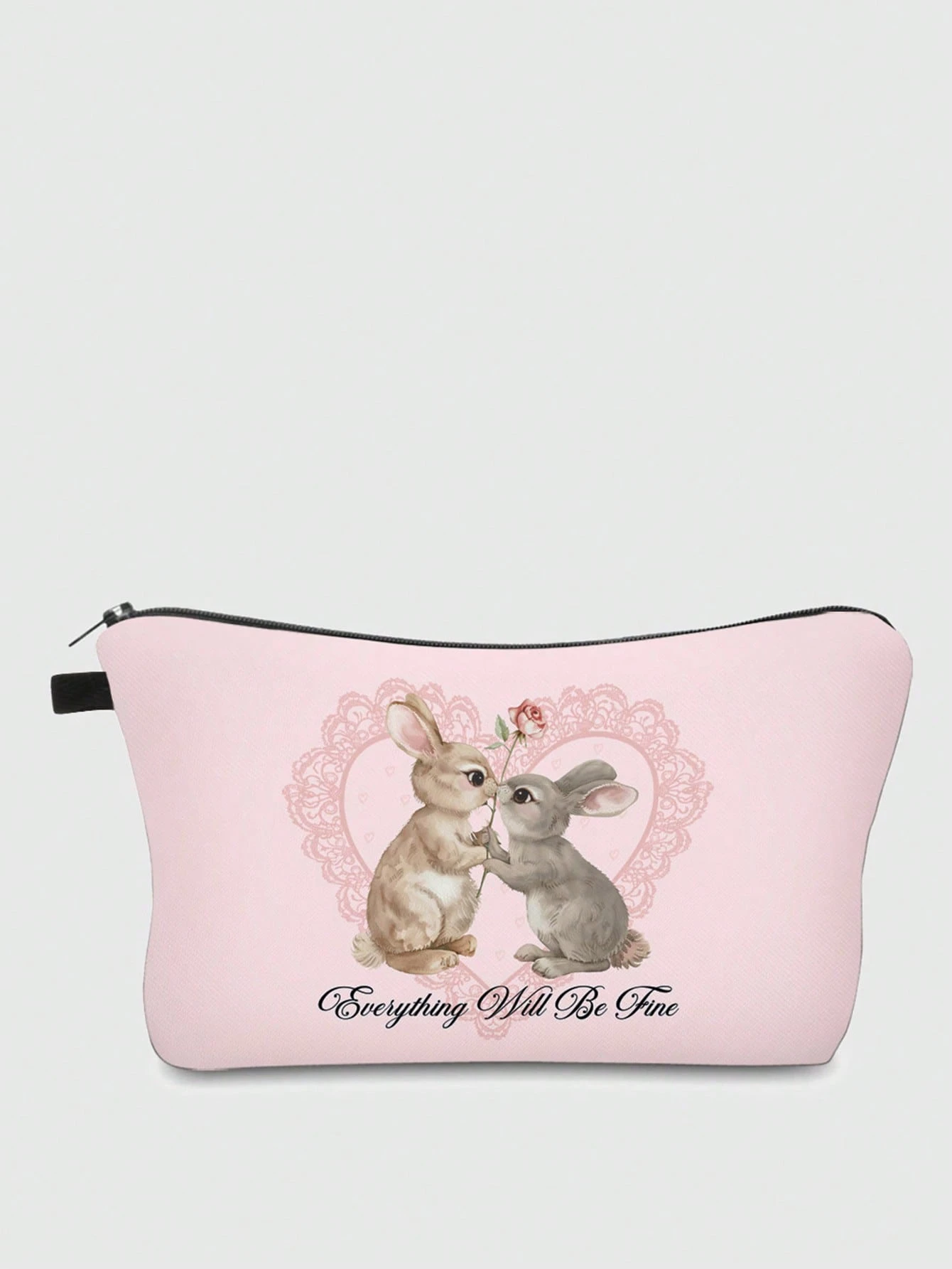Kawaii Artikel Nr.: 1002374 Rosa Kaninchen Muster Polyester Reißverschluss Kosmetiktasche, Damen Make-up Tasche, Reise Kulturtasche, Urlaubsgeschenk