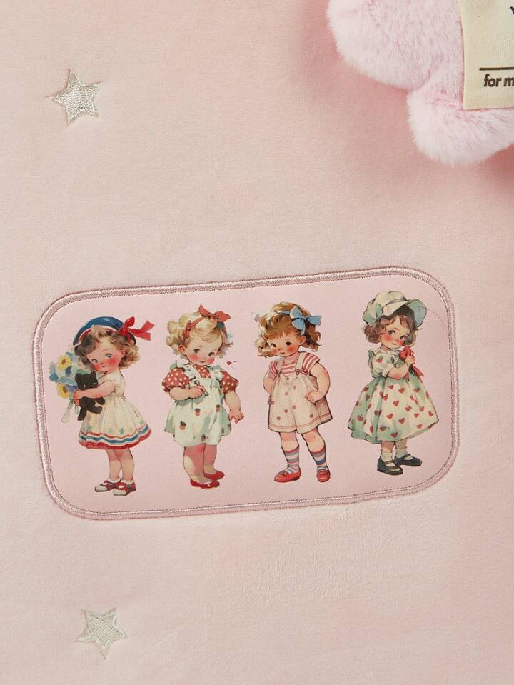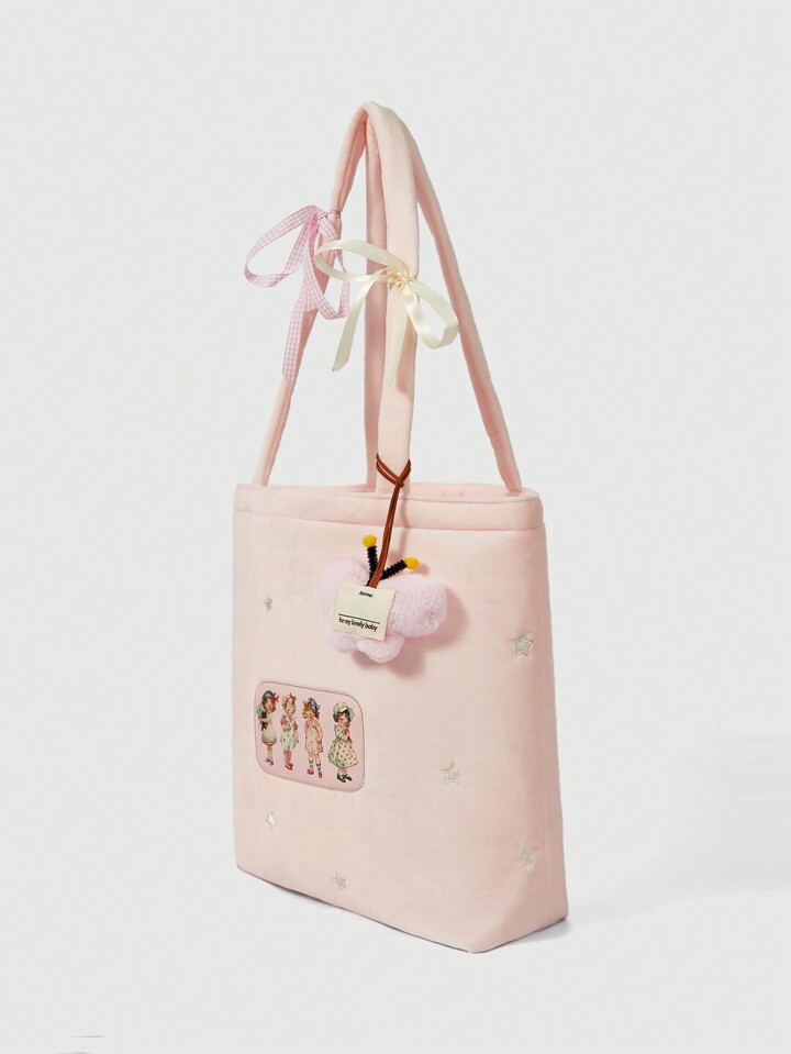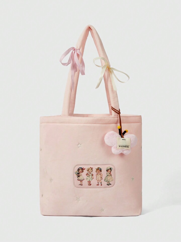 Kawaii Große, robuste Plüsch Schultertasche mit Cartoon Mädchen Muster für Frauen 442464
