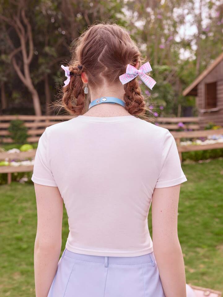 Kawaii Crop T-Shirt mit Buchstabe Katze & Blume Grafik