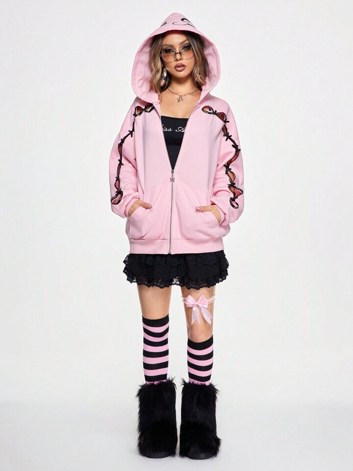 Kawaii Millennium Stil Schleifen Hohldurch Fleece Kapuzenpullover