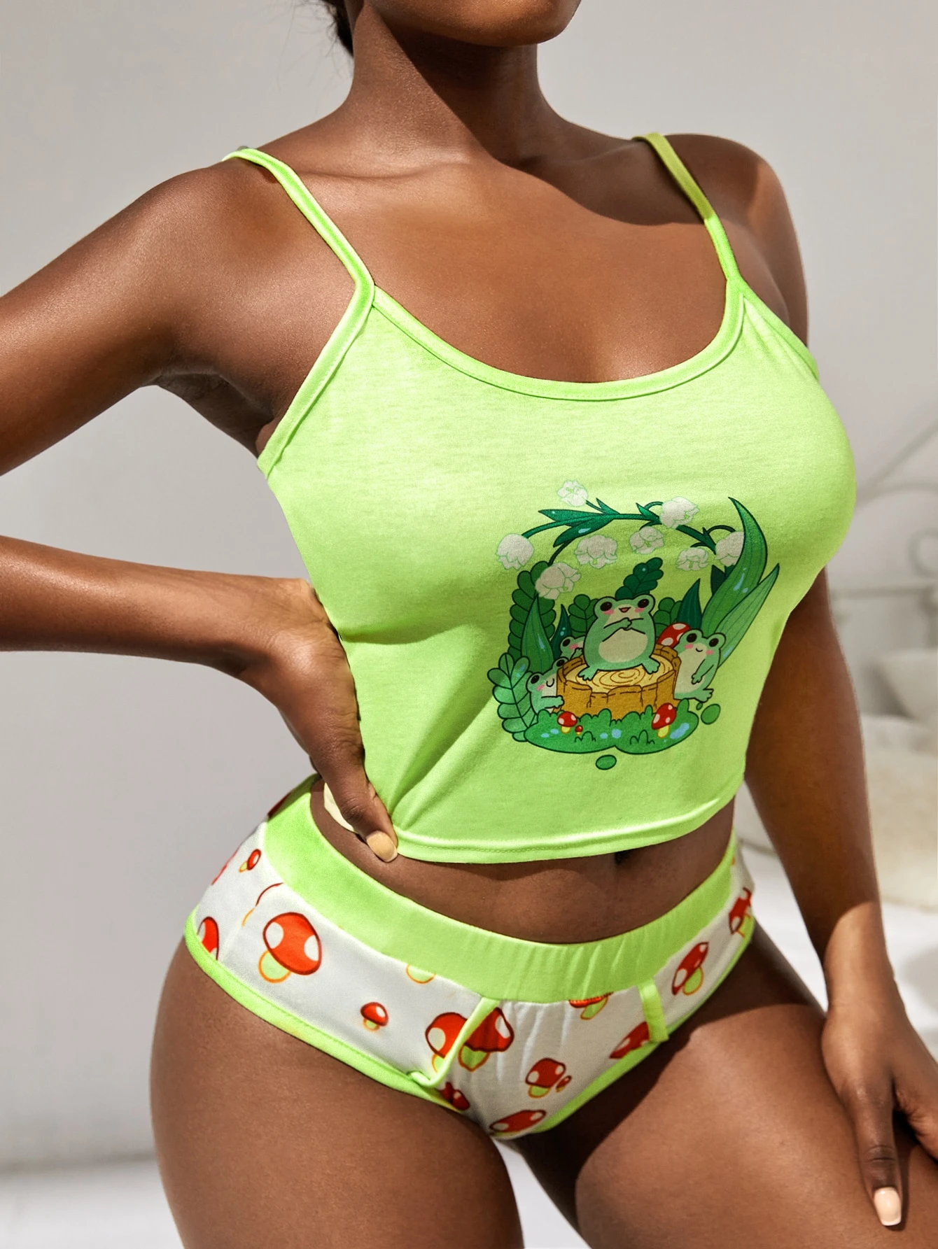 Kawaii Pyjama Set mit Pilz & Frosch Grafik