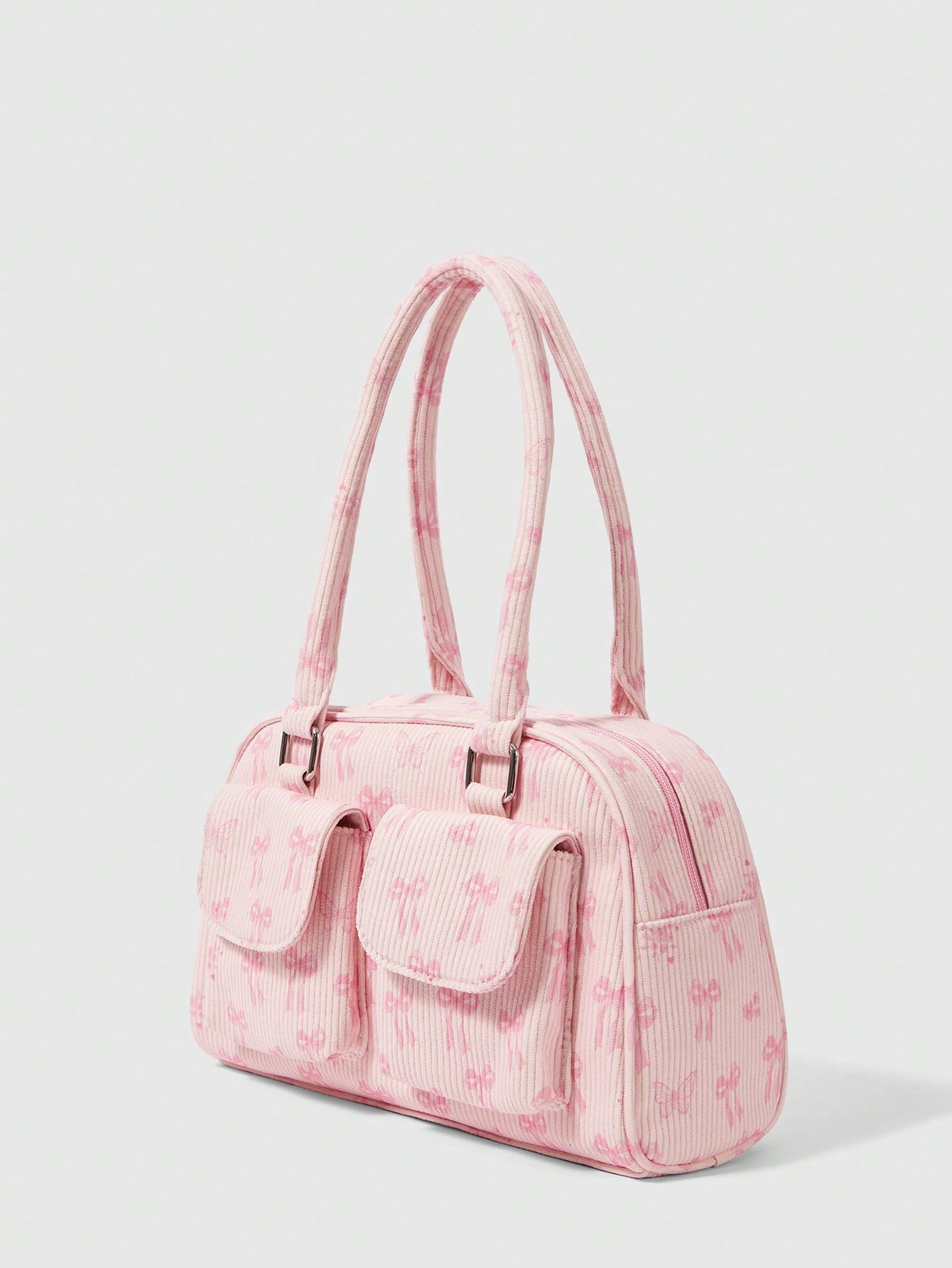 Kawaii Rosa Schleife, Schleifenprint Dekor Schulter Unterarmtasche mit mehreren Taschen, Boston Shopper Umhängetasche, Damen Handtasche
