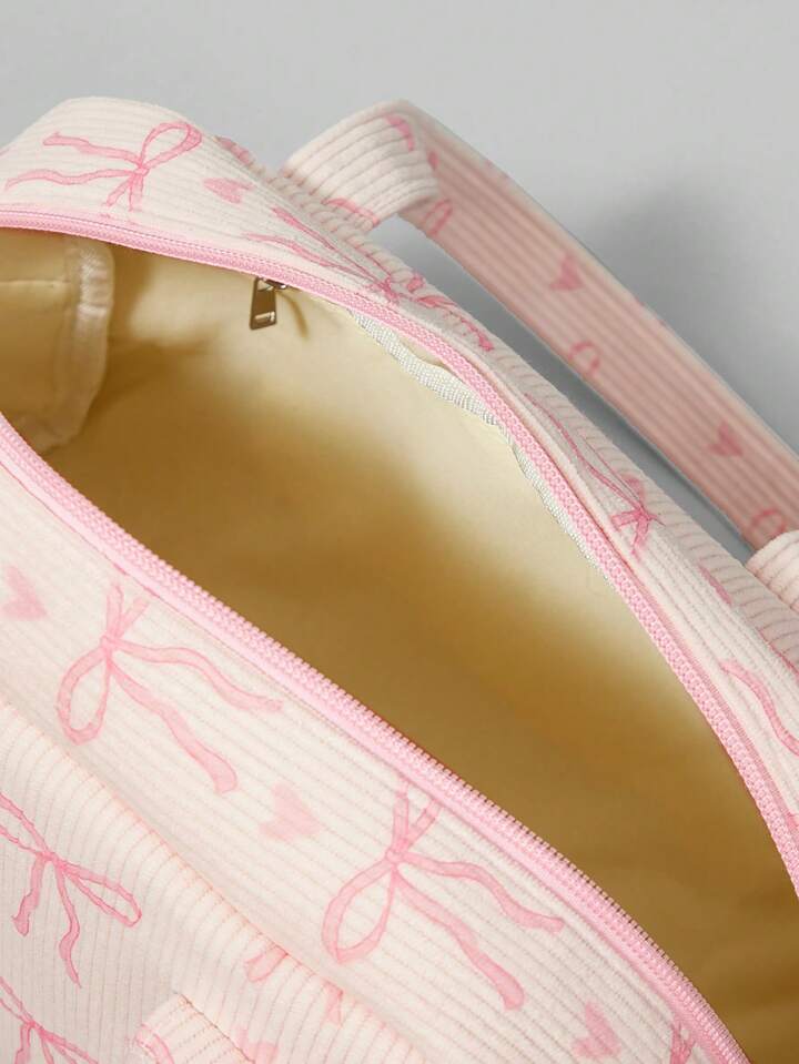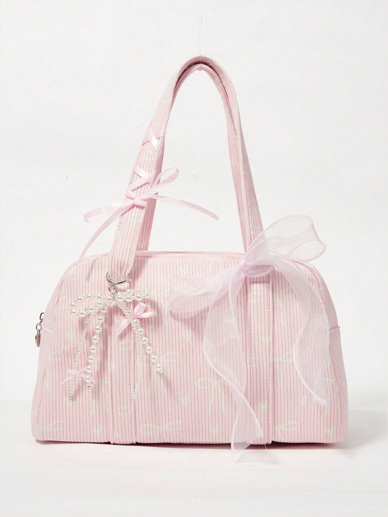 Kawaii Rosa Cord-Handtasche mit Schleife, modisch & tragbar mit Schleife & Herz Muster für Frauen