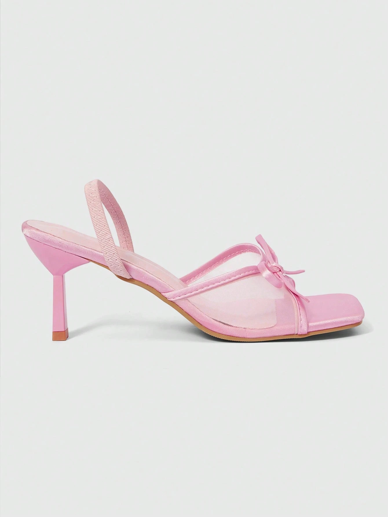 Kawaii Rosa neue offene Zehe Netz Mesh atmungsaktive High Heel Sandalen, vielseitige minimalistische Stiletto High Heel Sandalen für Damen im Sommer