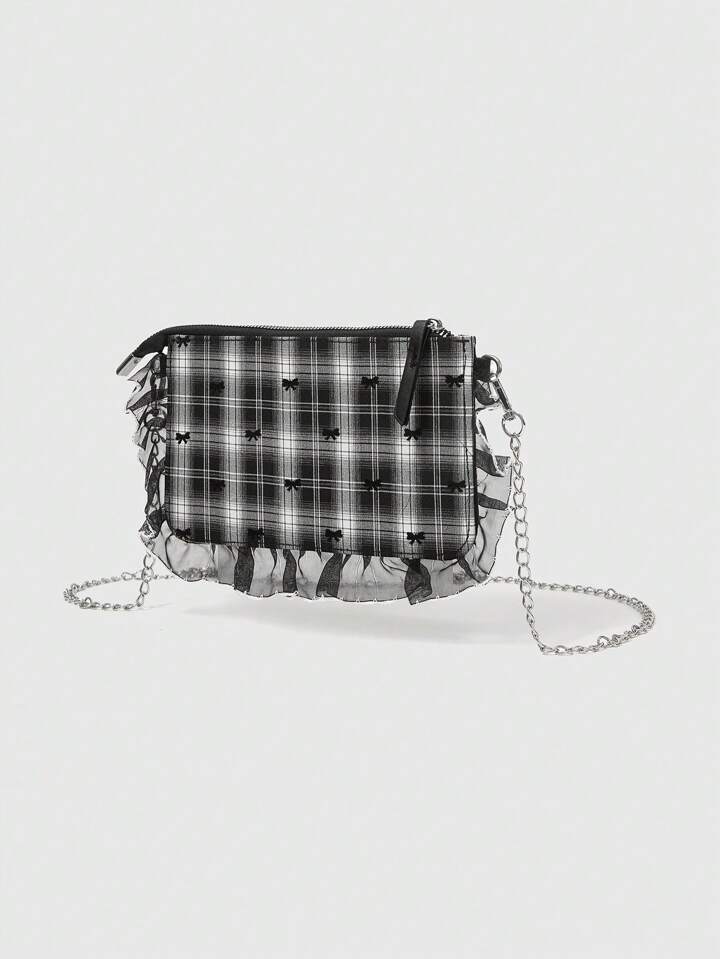 Kawaii Karierter und Schleifenprint Mode Schräg-Umhängetasche, geeignet für Pendeln und Reisen