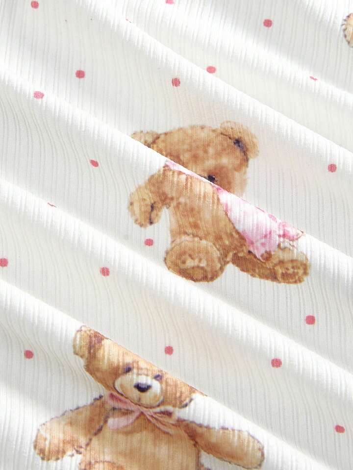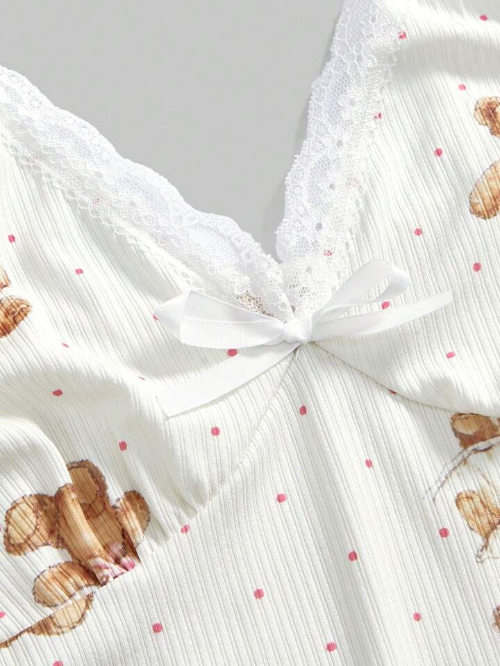 Kawaii Damen Große Größen Kontrast Spitze Teddybär Muster Trägershirt