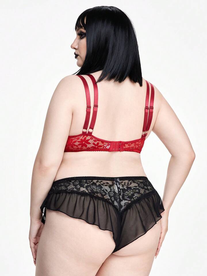 Kawaii Große Größen Damen Unterwäsche mit doppelter Spitzenöschicht und verstellbaren Trägern mit Bügel