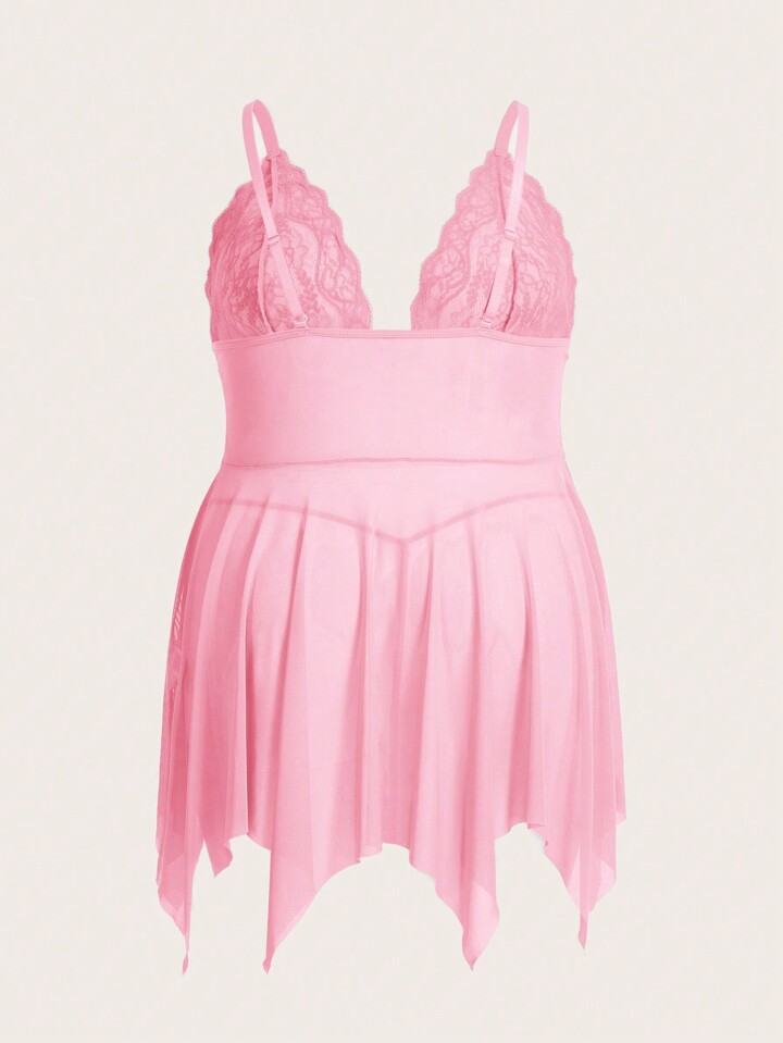 Kawaii Große Größen Damen Spitzen-Asymmetrischer-Saum Sexy Dessous-Set