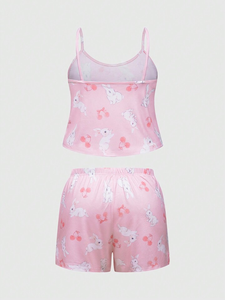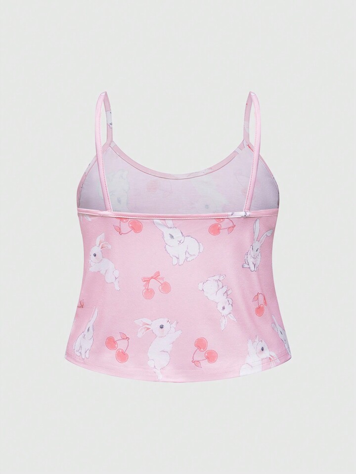 Kawaii Hase & Kirsche – Pyjama-Set mit Allover-Print und Camisole-Oberteil Große Größen