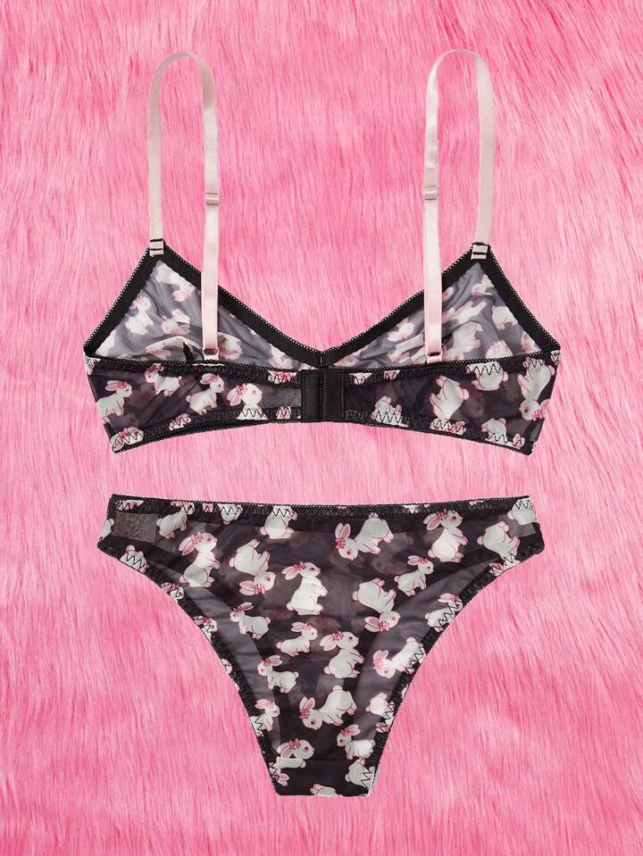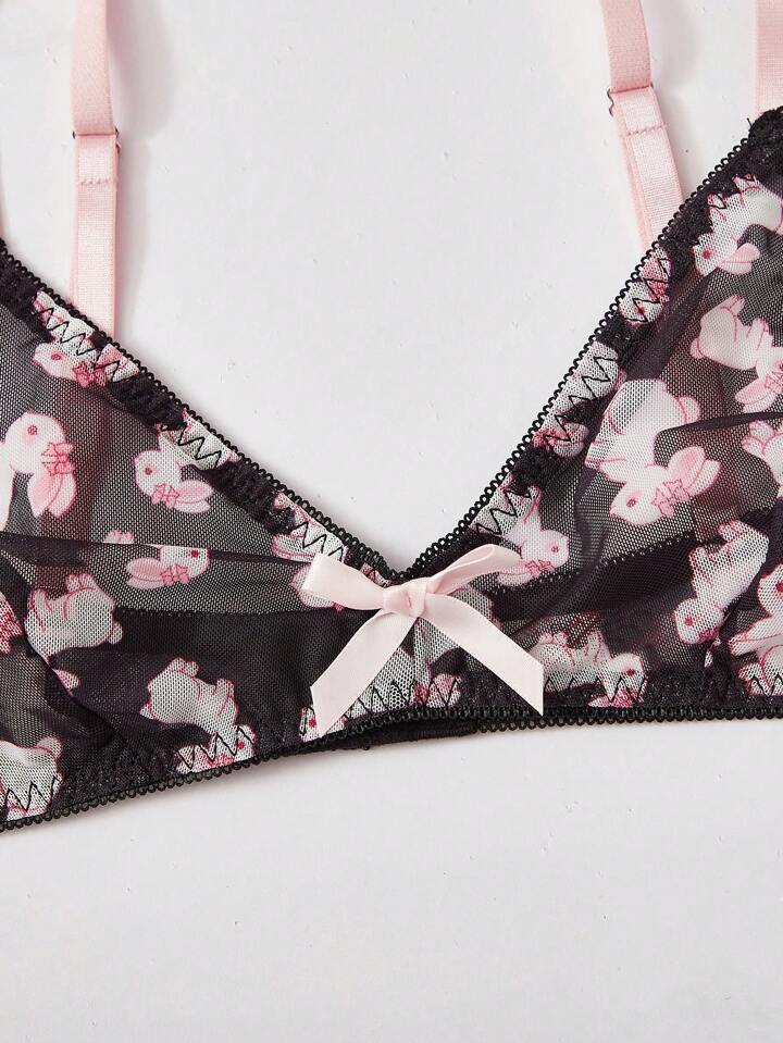 Kawaii Dessous Set mit Hase Muster, Schleife Dekor, Mesh
