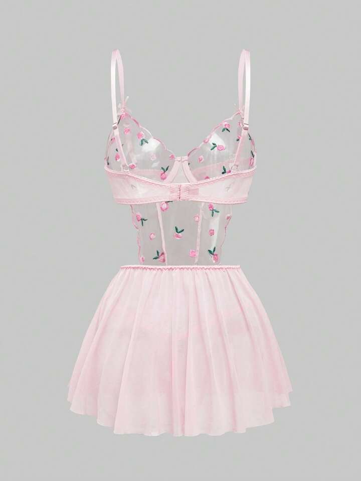 Kawaii Romantische Frühlingsfloral Stickerei Drahtbügel-BH und Panty Set, Sexy Wäsche