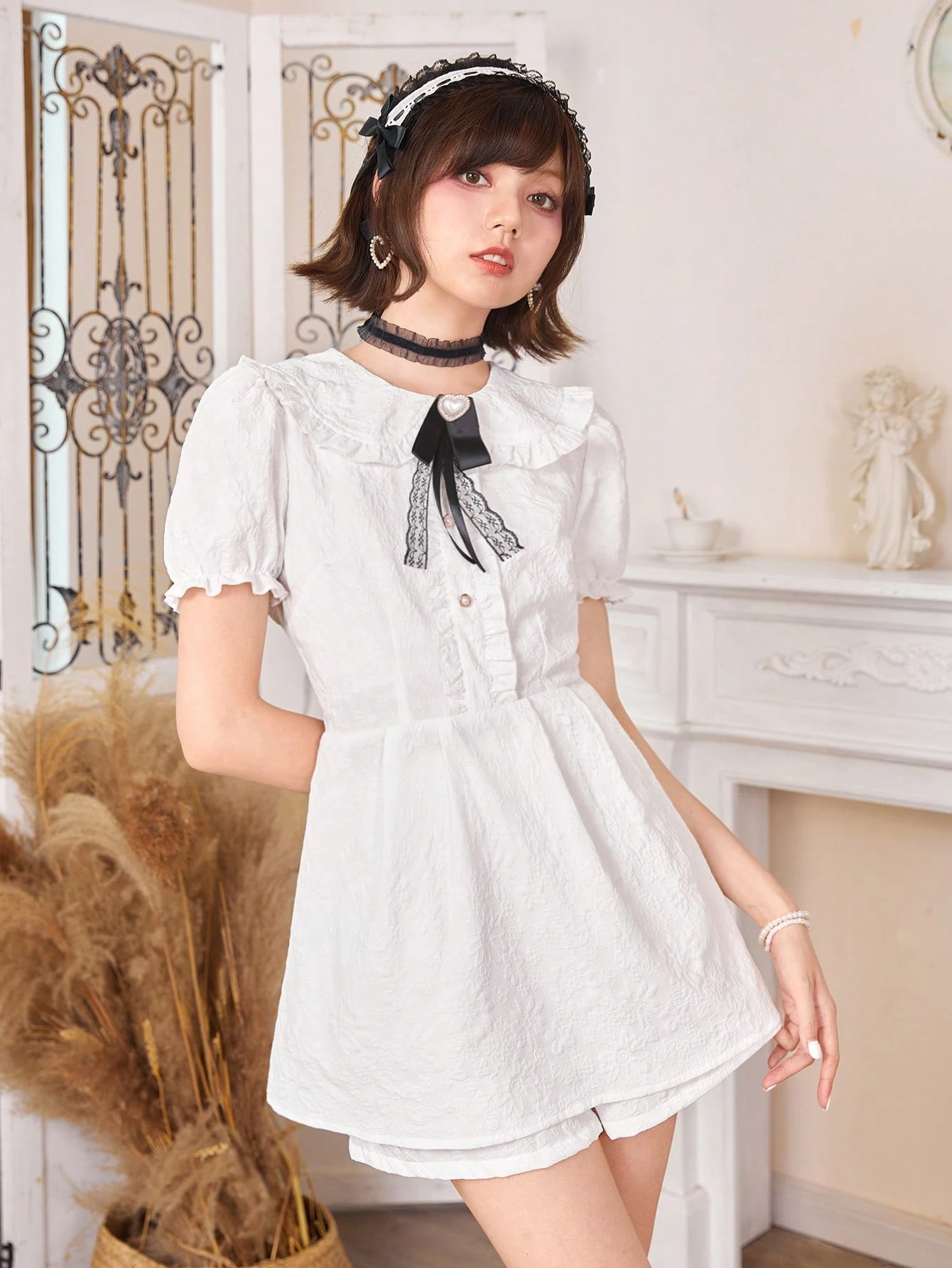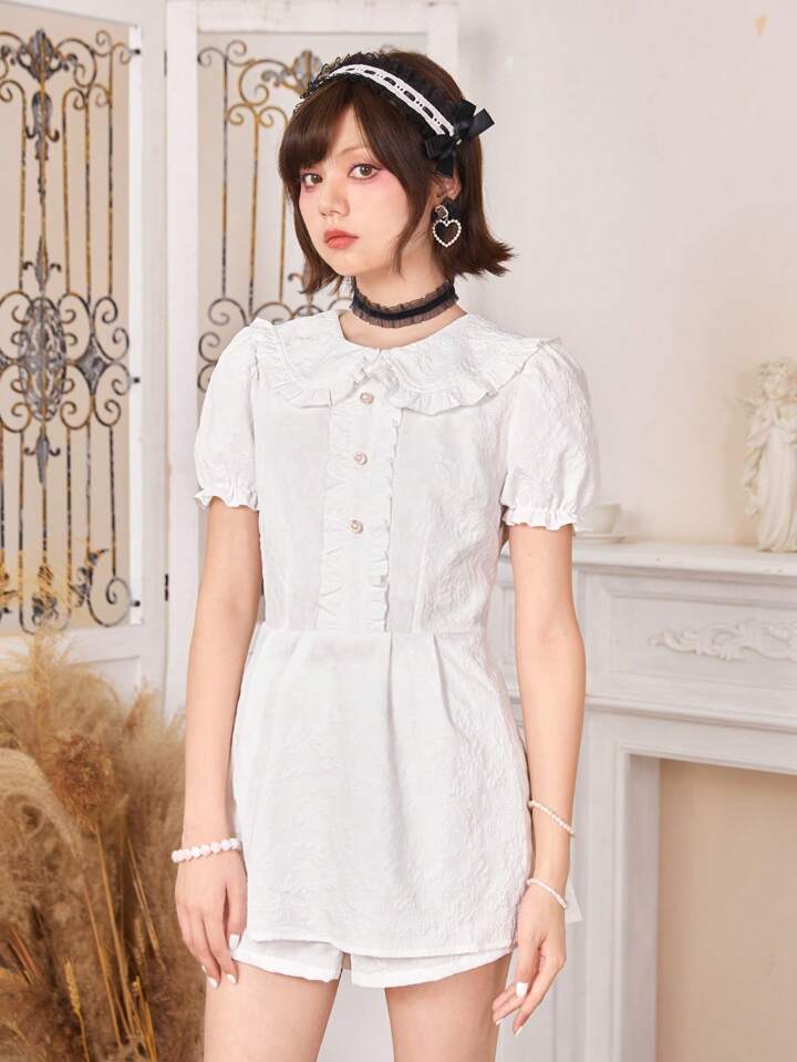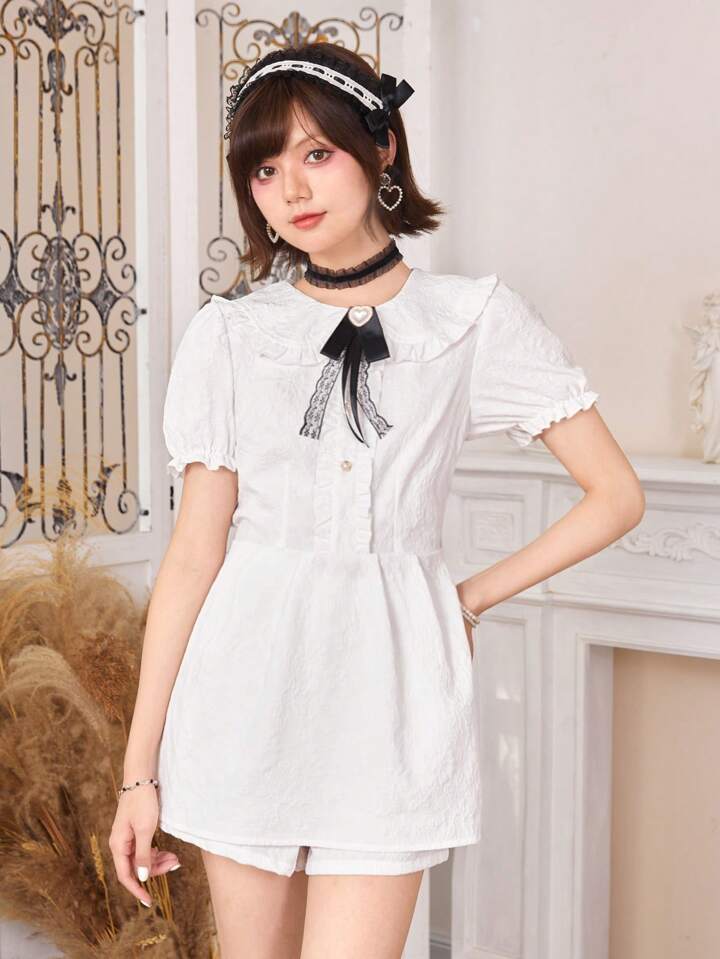 Kawaii Shorts & Top Rüschenbesatz, Puffärmeln,