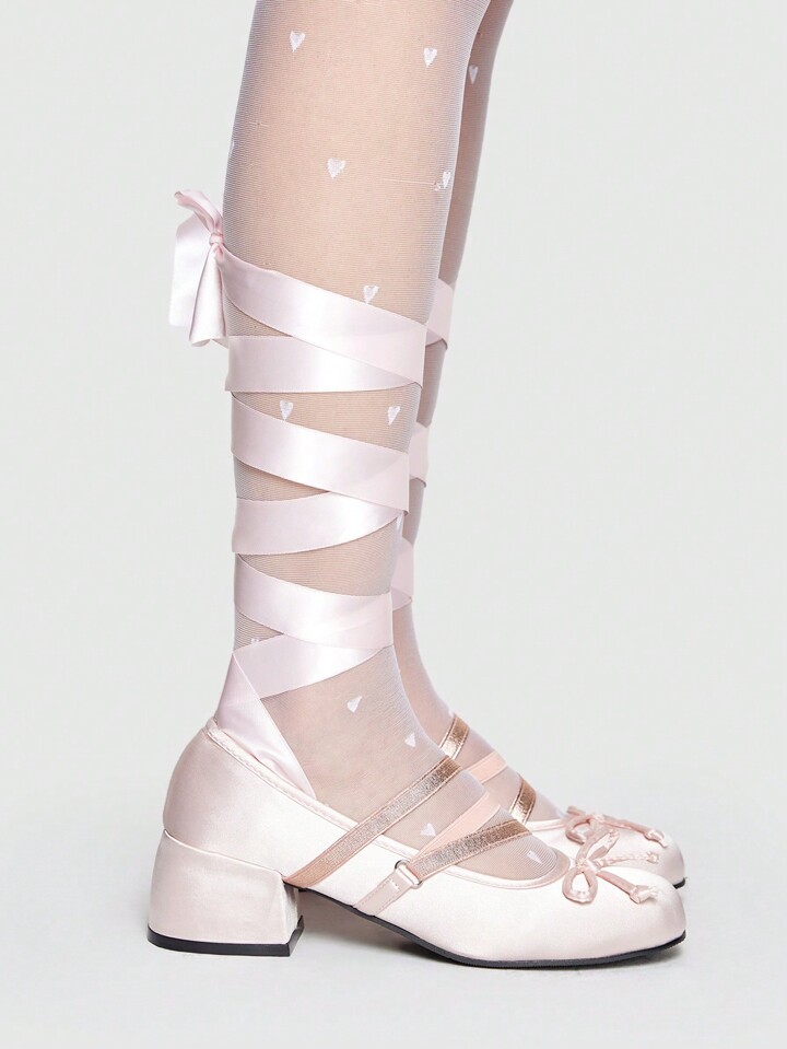 Kawaii Einfarbige Schleifendekor elegante süße High Heels für Weihnachten und Neujahrsstimmung Herbst und Winter Valentinstag