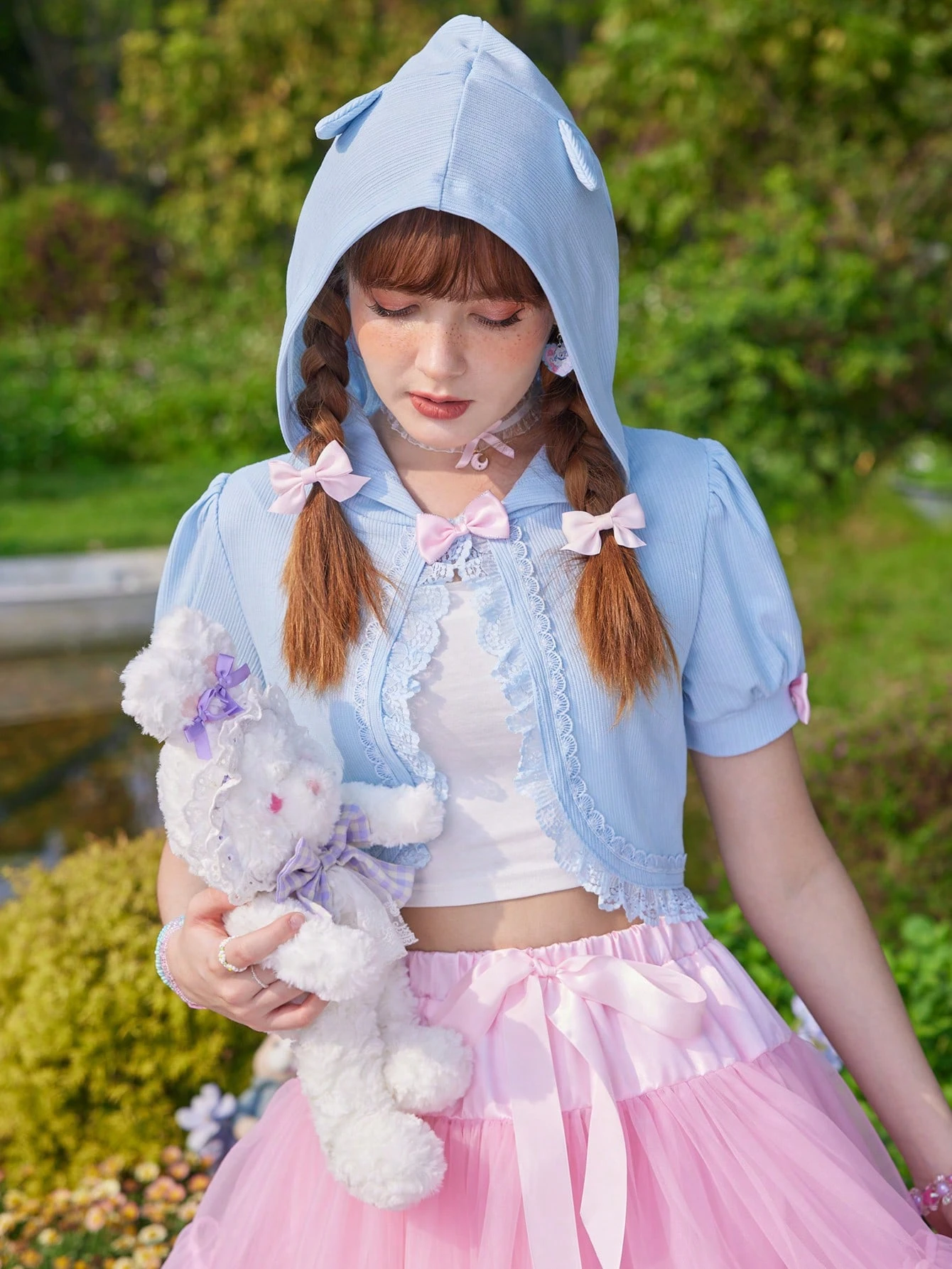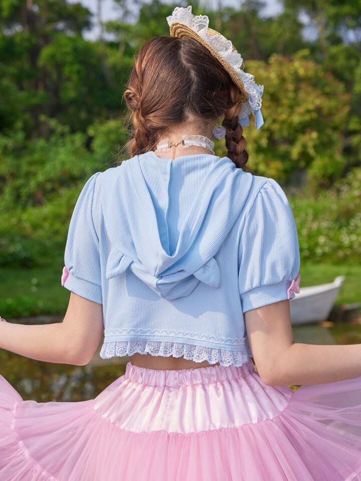 Kawaii Schleifen Durchsichtige Spitze Einfarbig Lässig Frauen Tops