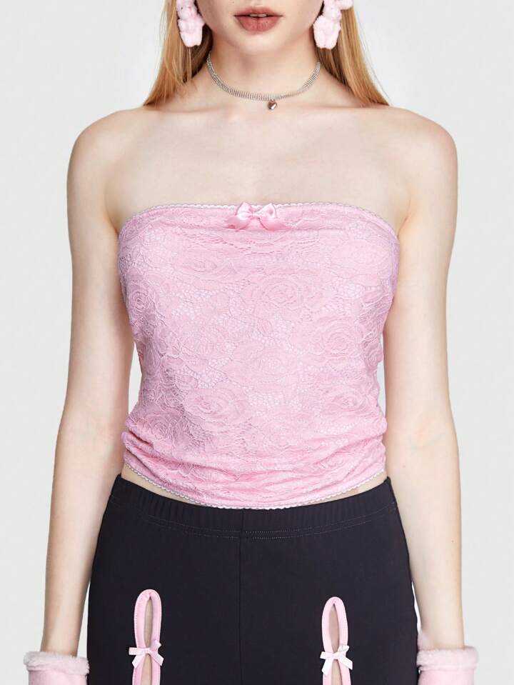 Kawaii Einfarbig Spitzen Tube Top ohne Ärmel