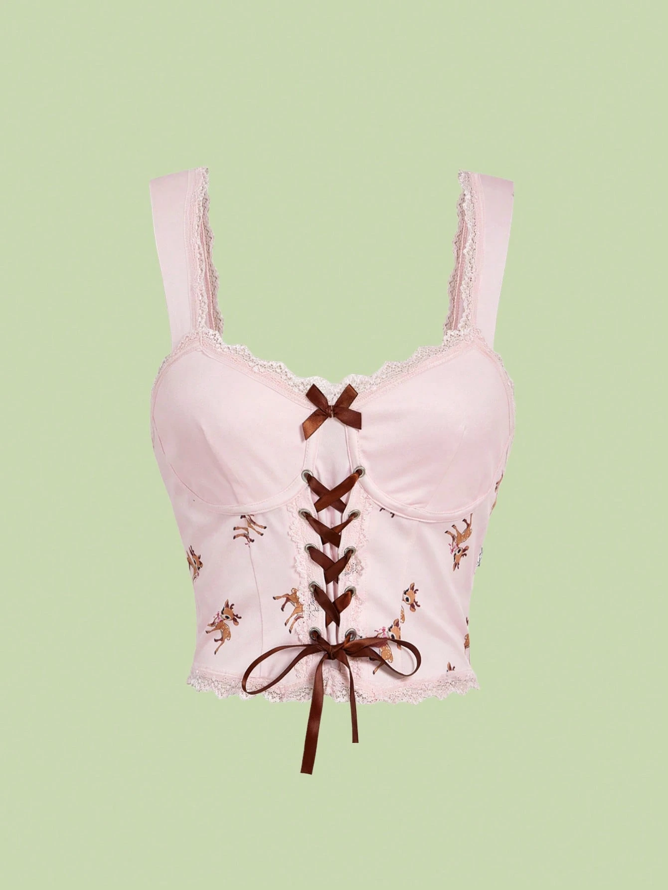 Kawaii Süßes Hirsch-Muster Spitzen-Patchwork Schleifen-Camisole für Frauen