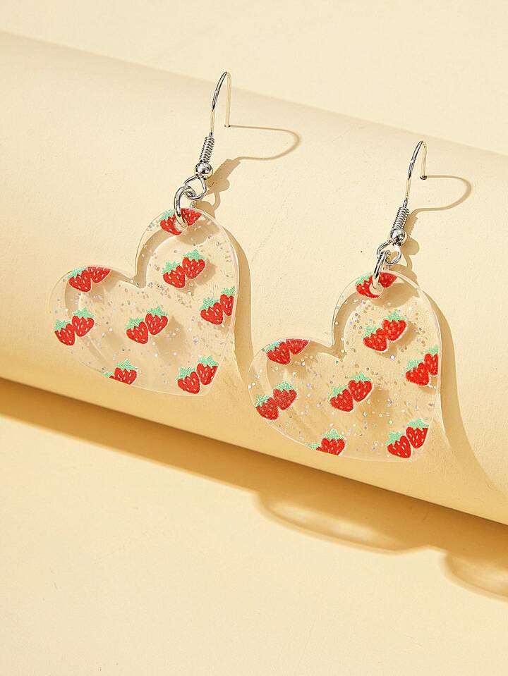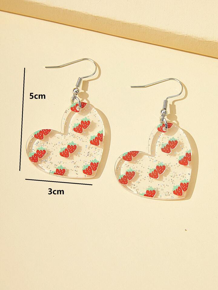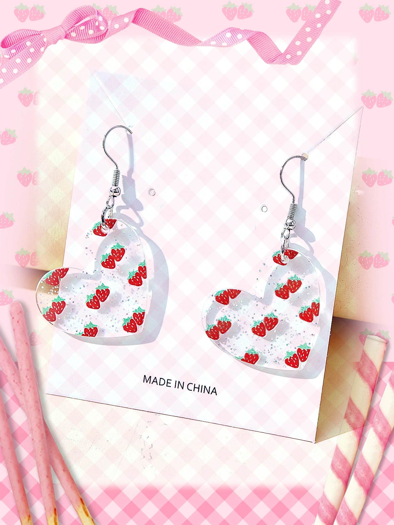 Kawaii Ohrringe mit Erdbeere Muster, Herz