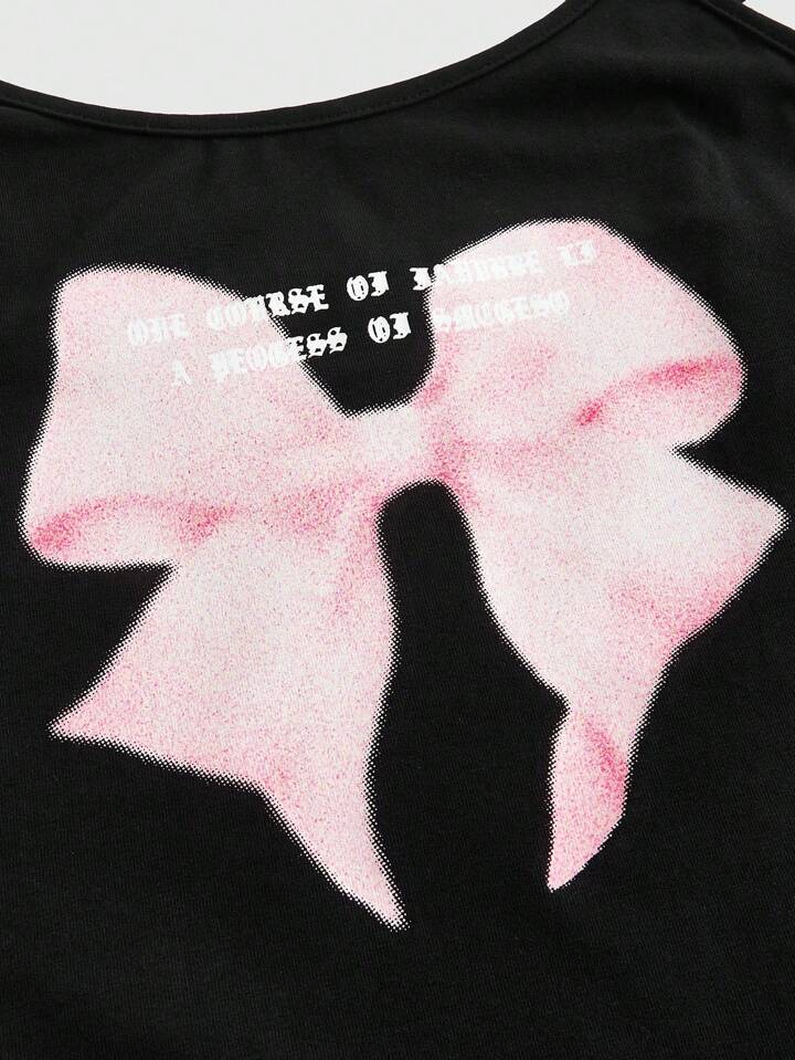 Kawaii Sommer Cami-Top mit Schleife und Slogan-Muster