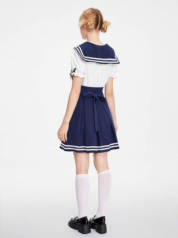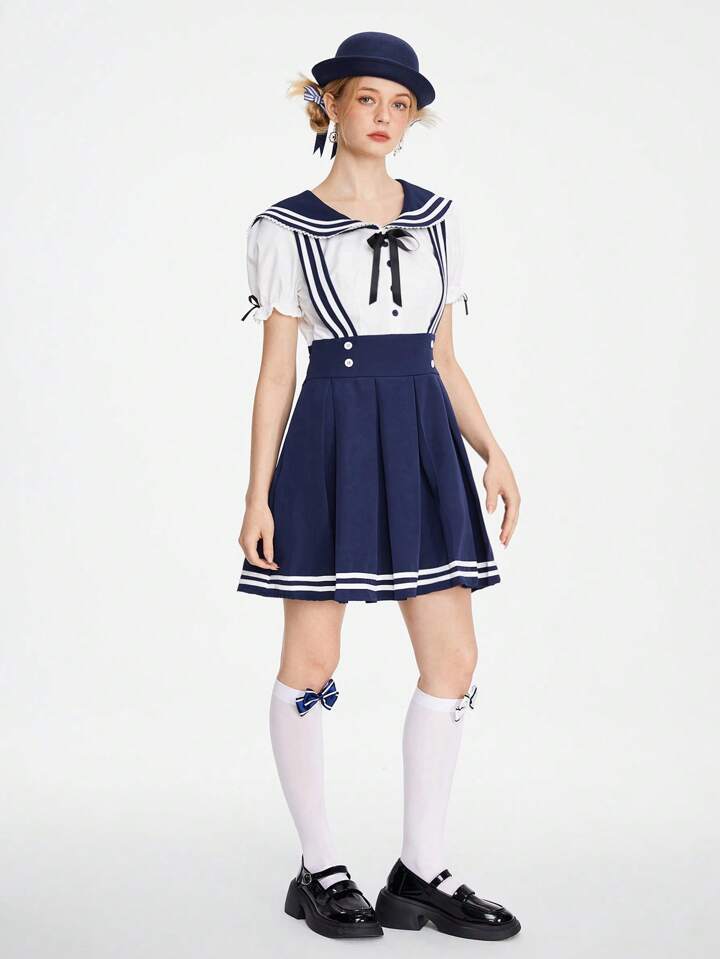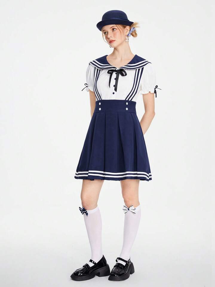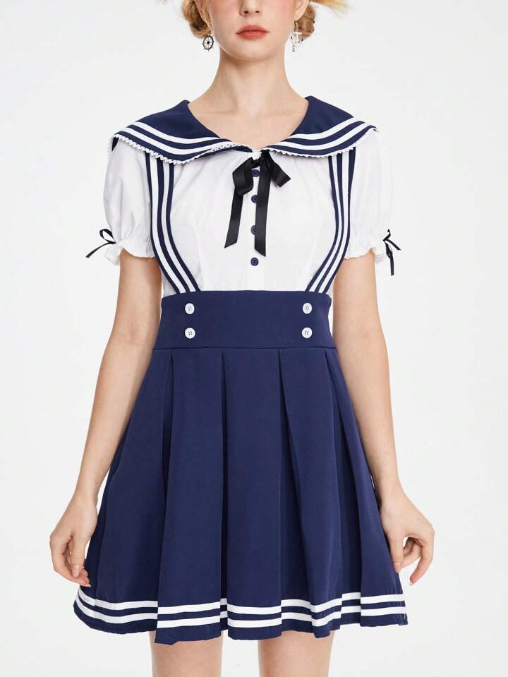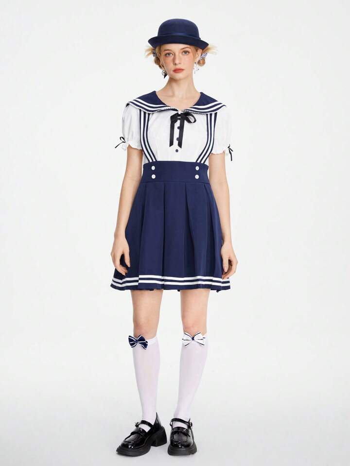 Kawaii Süßes 2-in-1 Damen Kleid im Matrosen-Stil, Schule