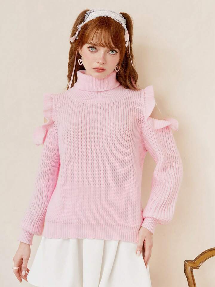 Kawaii Cut Outs Rüschen Einfarbig Lässig Damen Pullover