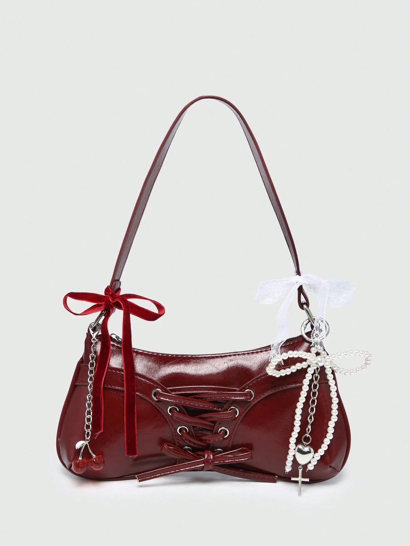 Kawaii Vintage Schleife Dekokette & Kunstperlen Spitze Dekor Umhänge-/Unterarmtasche