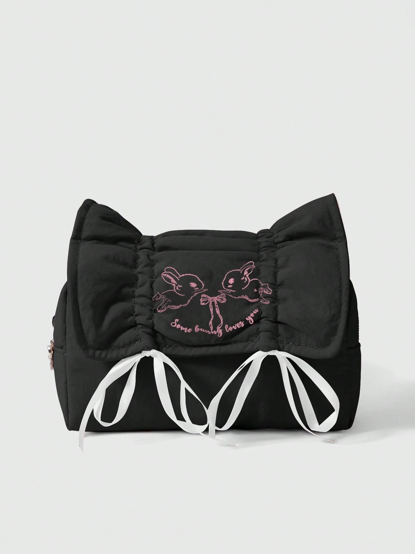 Kawaii Vintage niedliche Schleife Kordelzug Großraum tragbare Kosmetiktasche & Stifteetui mit Schleifen-Reißverschlusszipper
