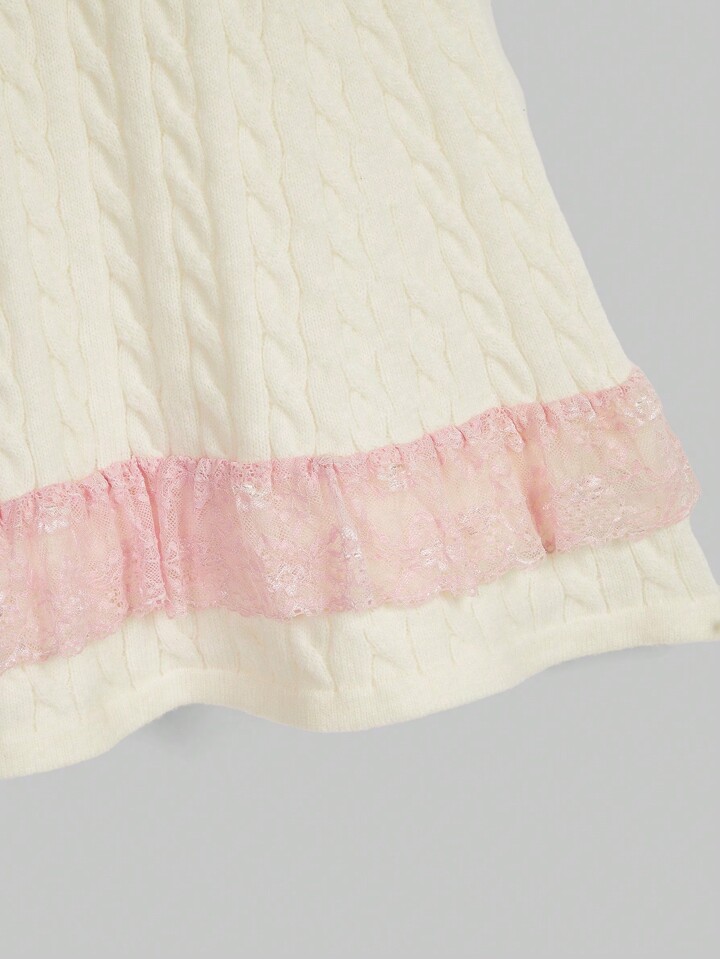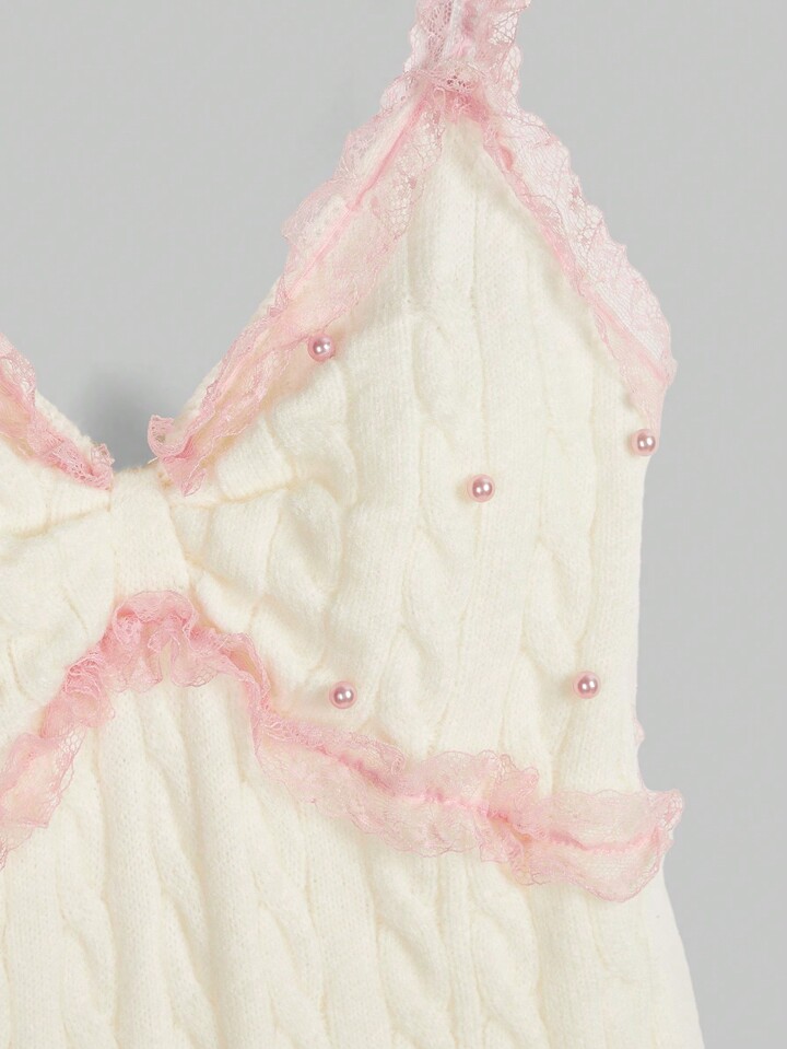 Kawaii Vintage Spitzen Rüschen und Perlen verziertes Trägerkleider aus Strick für Frauen