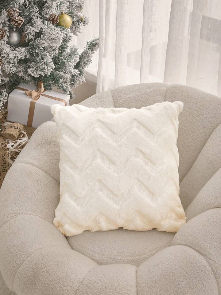 Kawaii Weißer Plüsch-kissenbezug Mit Linienstruktur