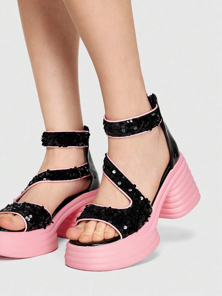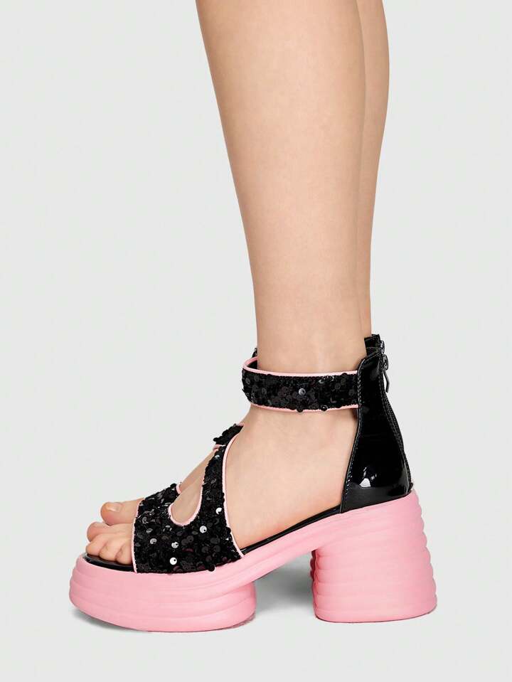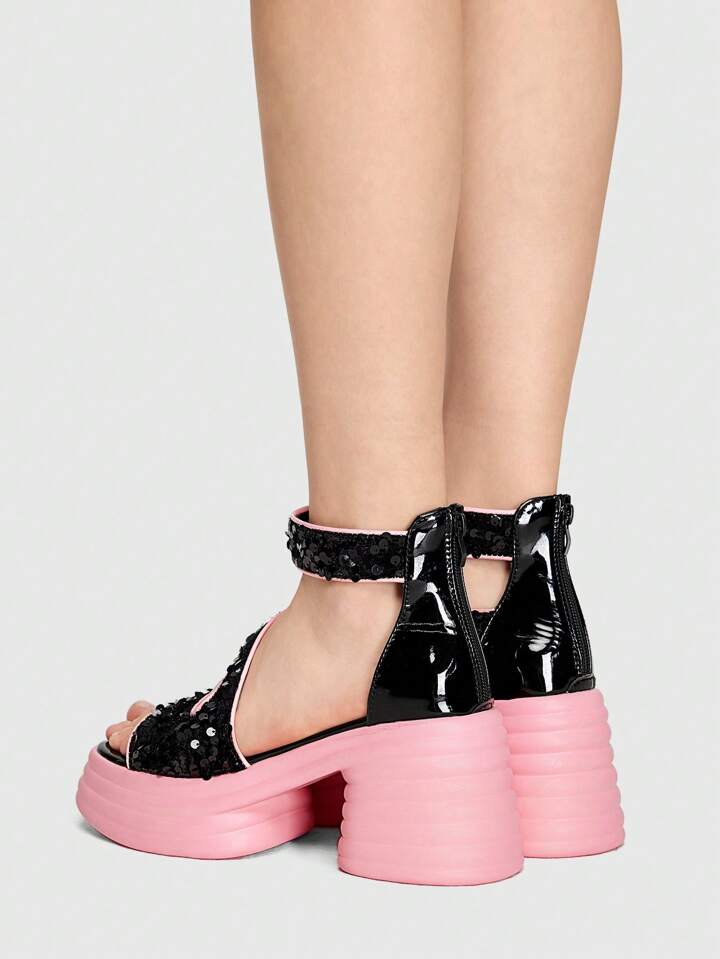 Kawaii Europäische und amerikanische Glitzer Plateausandalen für Damen mit offenem Zehenbereich