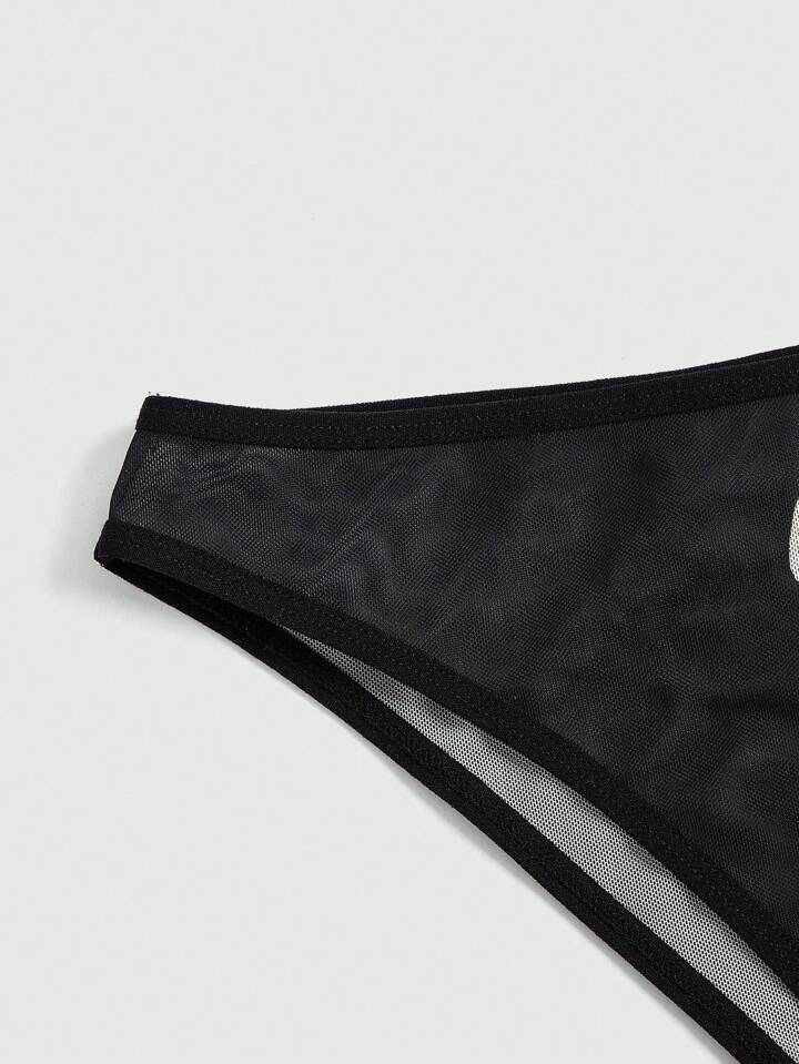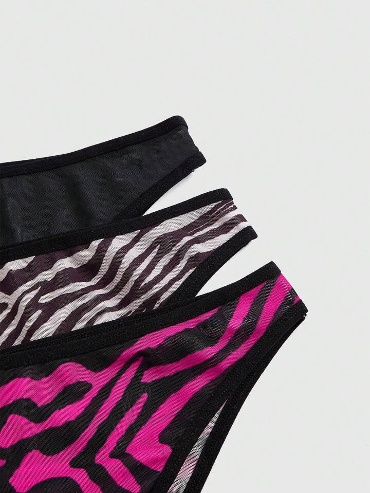 Kawaii Damenmode Shibuya Zebramuster & Schmetterlings-totenkopf Dreieck-unterwäsche-set (3 Stücke)