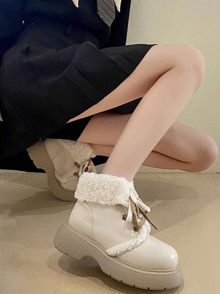 Kawaii Frauen Band vorne, flauschigem Besatz Stiefel , Fashion Outdoor Stiefel