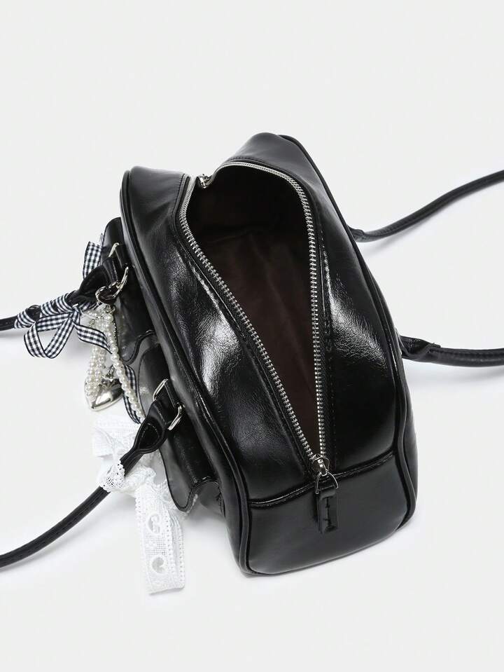 Kawaii Damen Retro süße karierte Schleife Dekor Kirsche Herz Unterarm Tasche mit Mehrfachtaschen Boston Handtasche, Schule