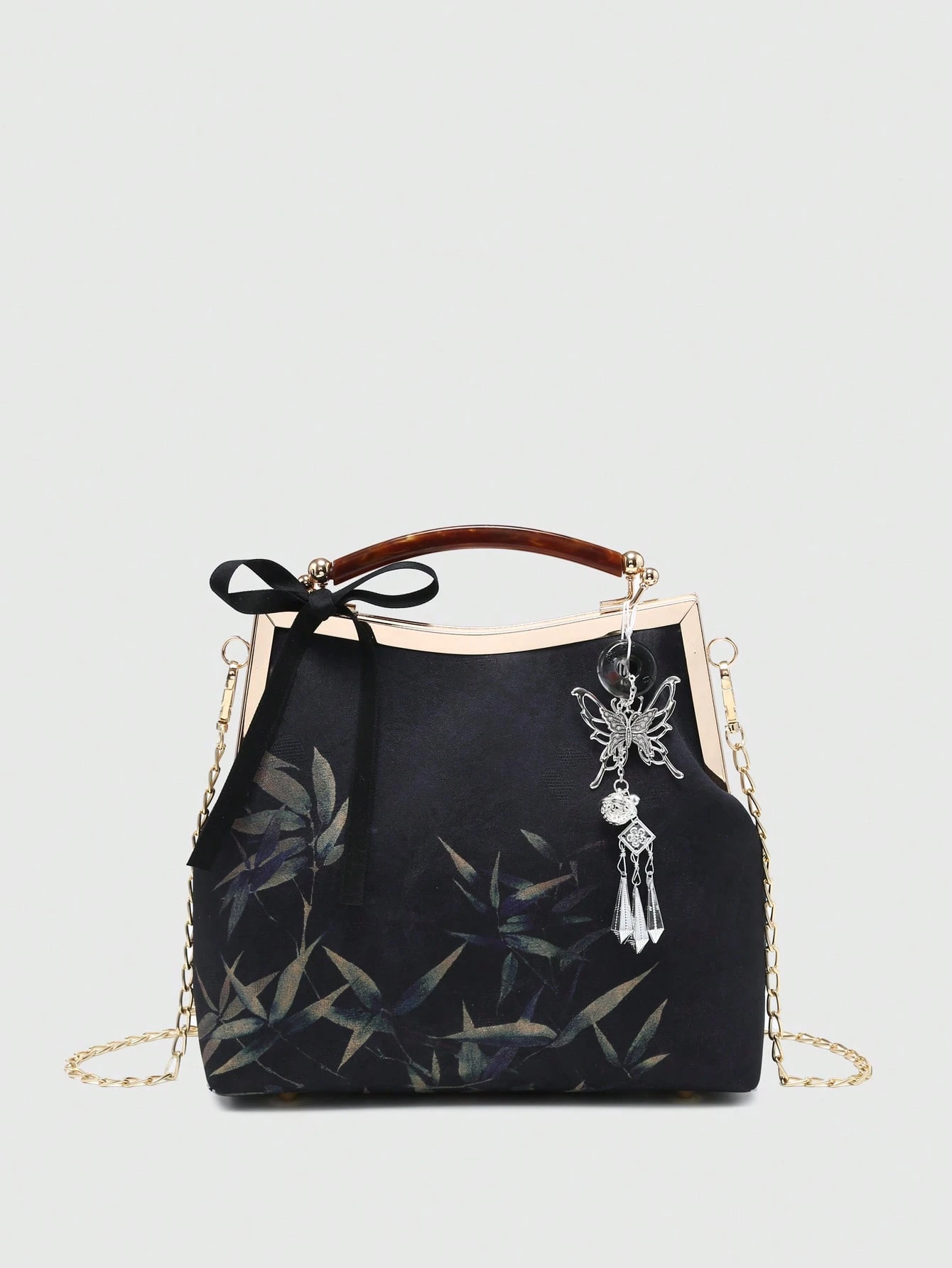 Kawaii Damen Tasche im antiken Nationalstil mit Bambusblatt und Vogelclip