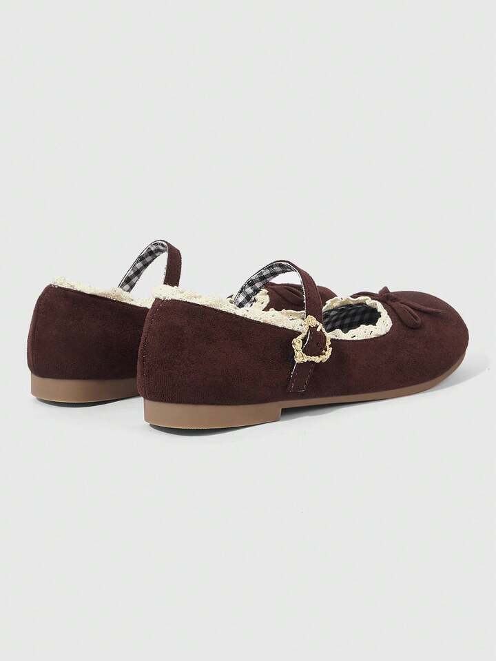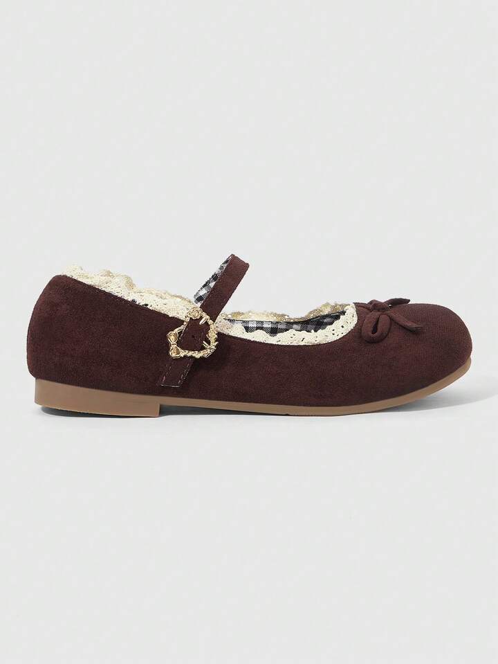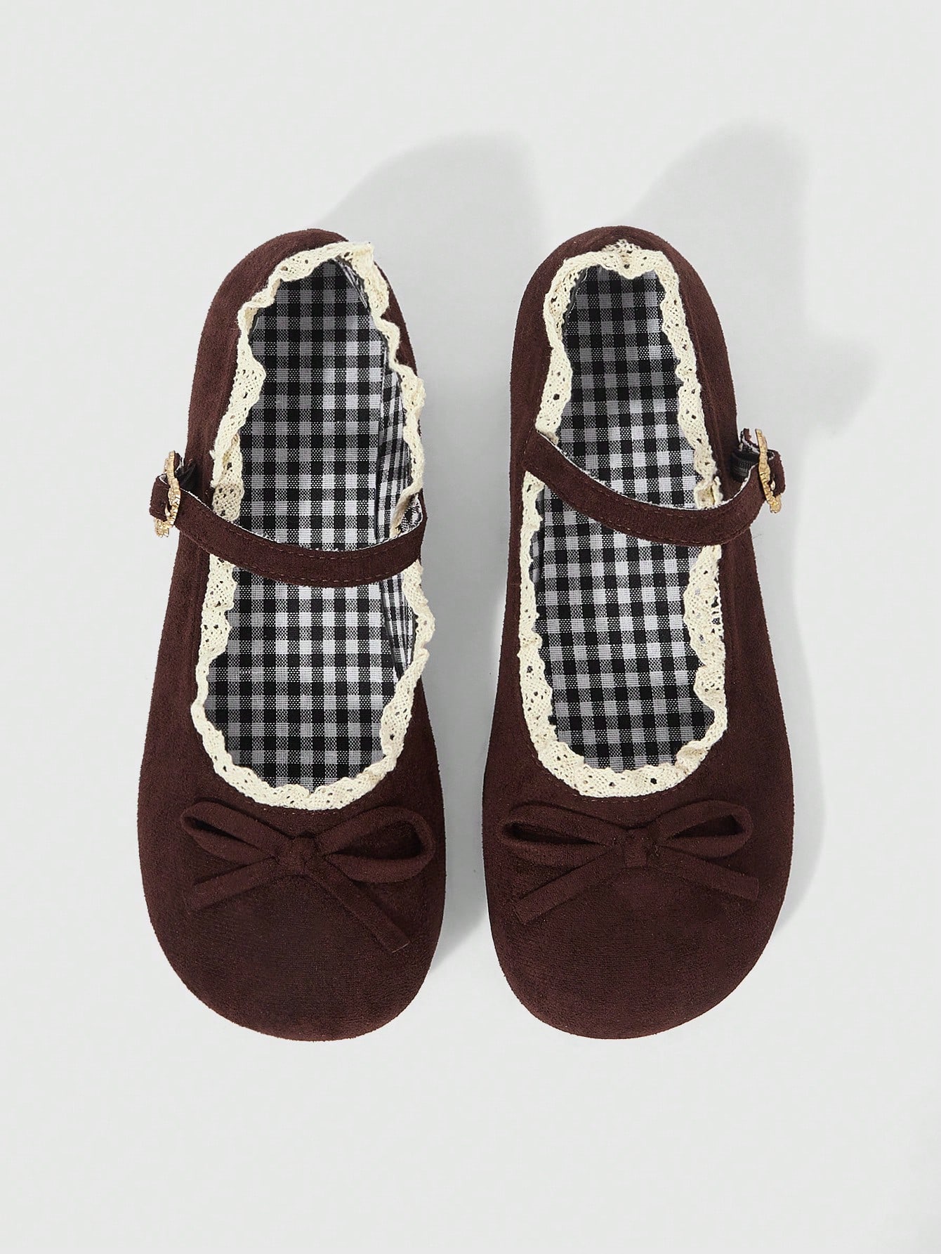 Kawaii Damen Braune Loafer, geschlossene Mary Jane Schuhe, Schleifen-Spitze Lolita Ballerinas, Ballettschuhe