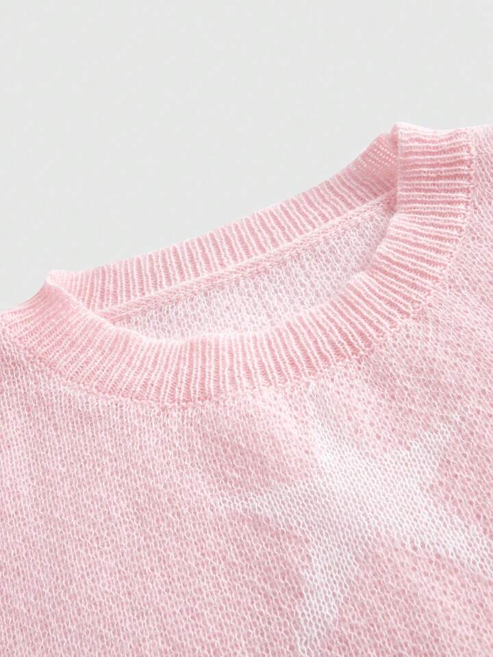 Kawaii Lässiger, Süßer Rosa Damenpullover Mit Stern-jacquard, Löchern Und Pullover-design