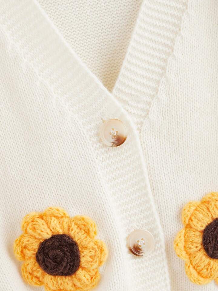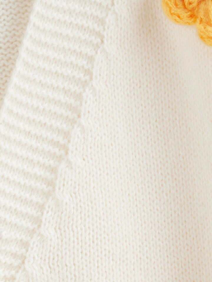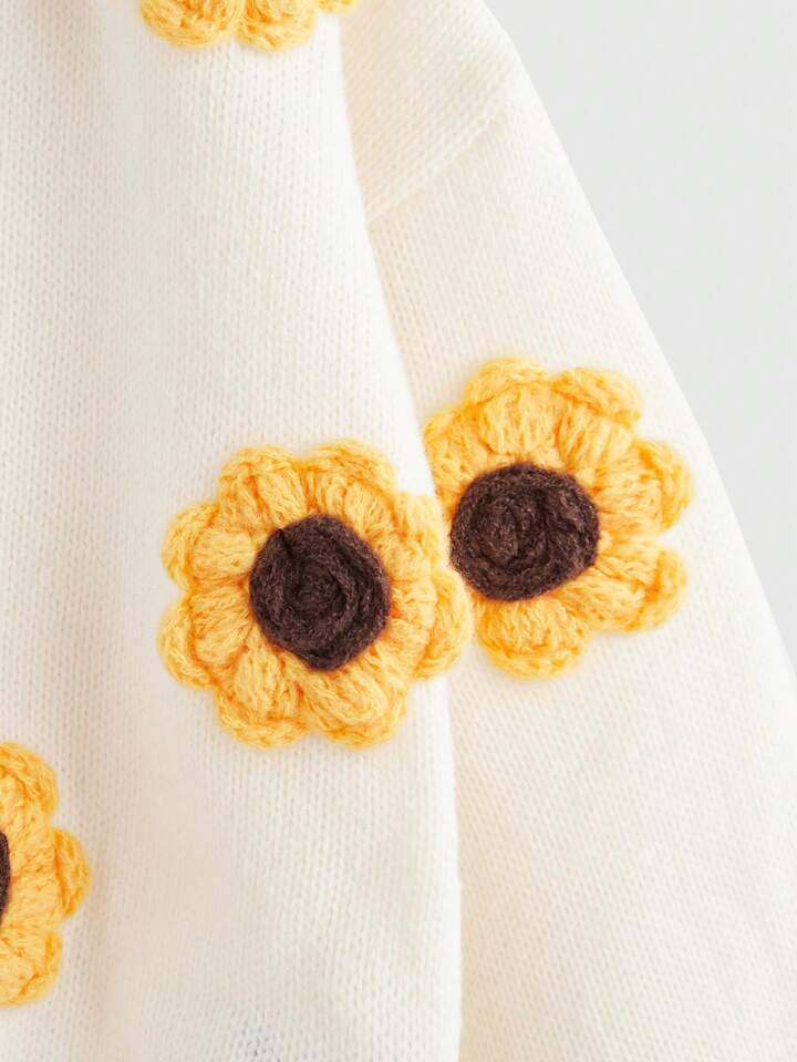 Kawaii Damen lässige süße Strickjacke mit 3D Blumen-Dekor und Laternenärmeln