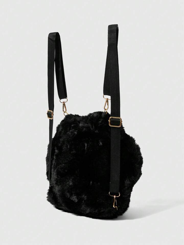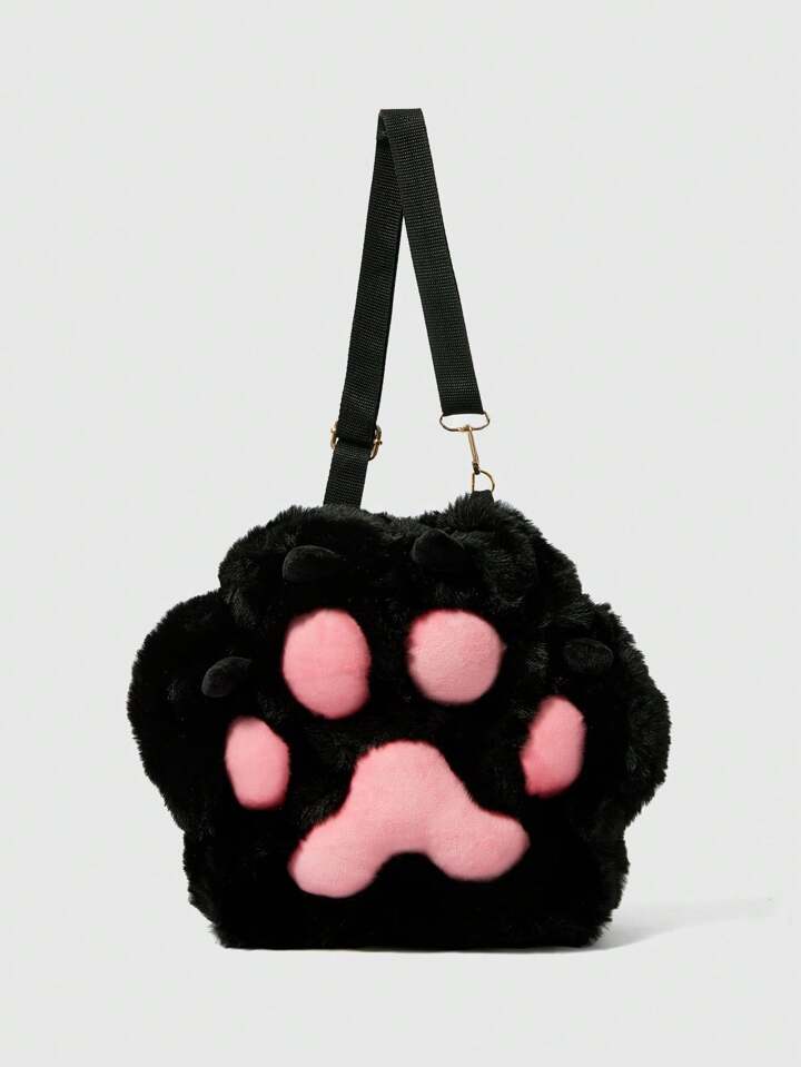 Kawaii Damen süße Katzen Pfoten Plüsch Rucksack, Anime Lolita Stil flauschige Lässig schwarze Tasche