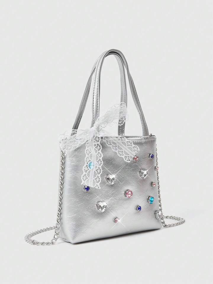 Kawaii Damen Mode Strass Mini Eimer Handtasche mit Kette, Schulter-/Umhängetasche